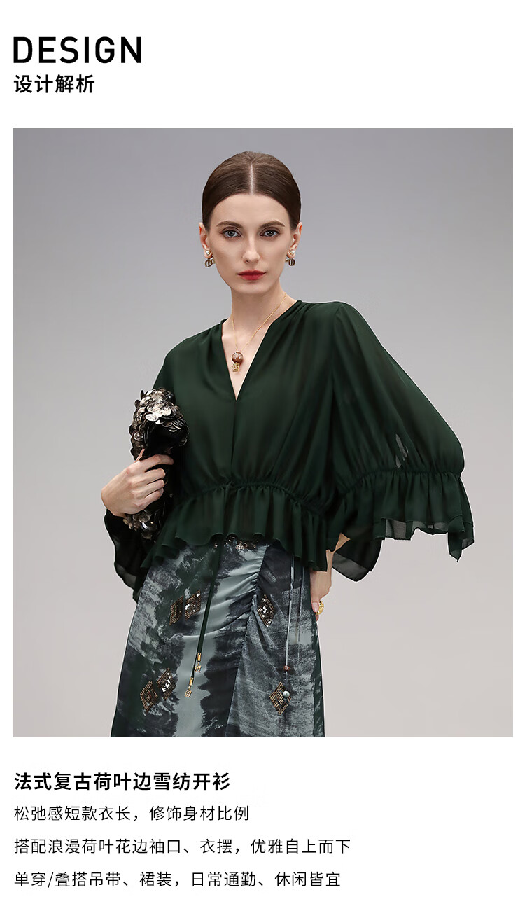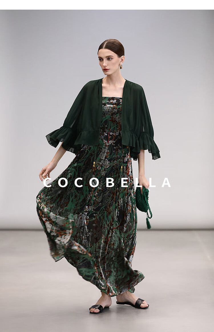 COCOBELLA法式优雅重工对丝荷叶边小开衫雪纺衫空调衫LC3103B