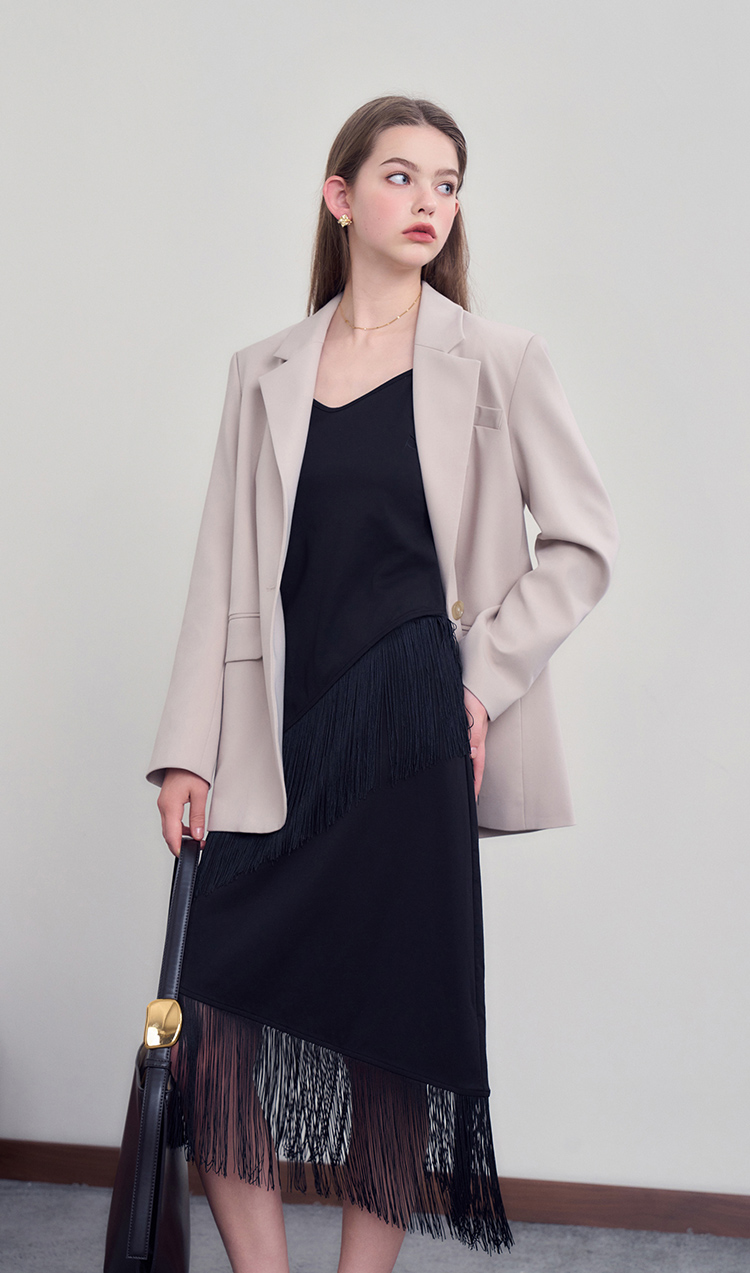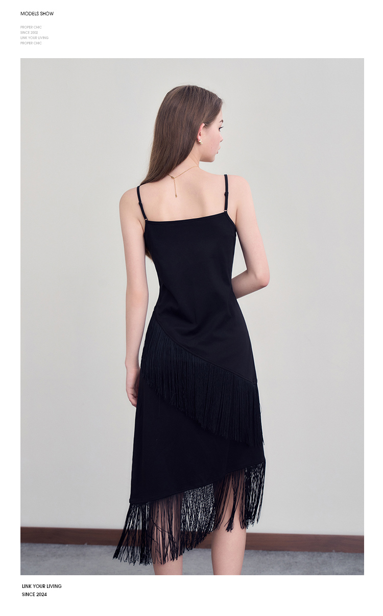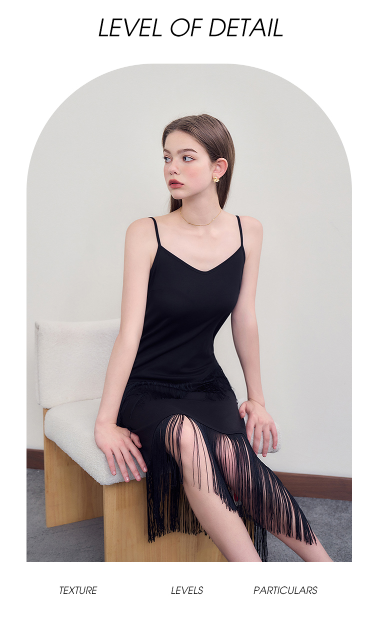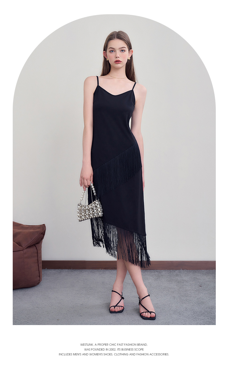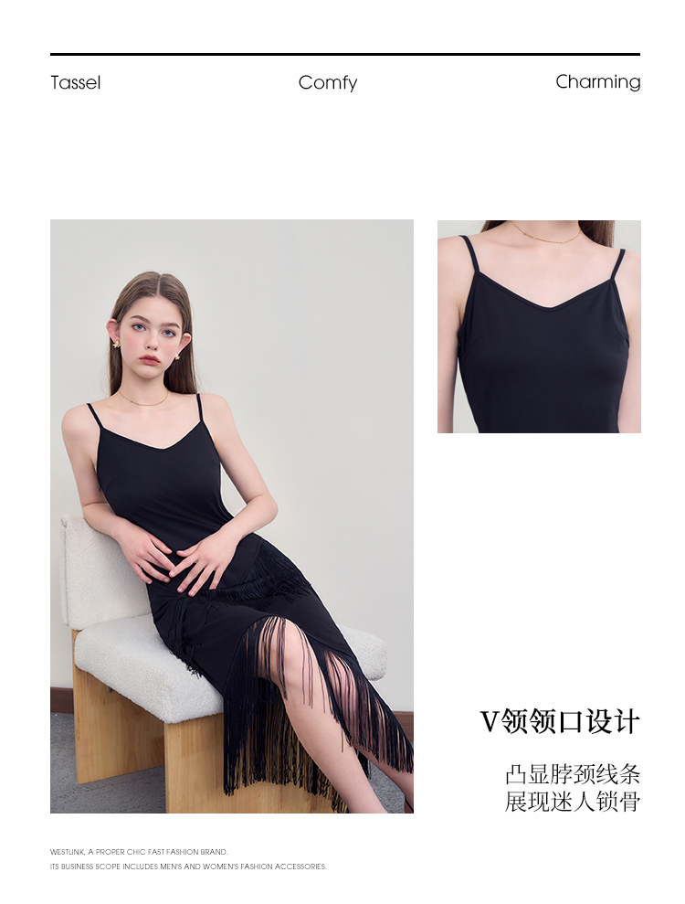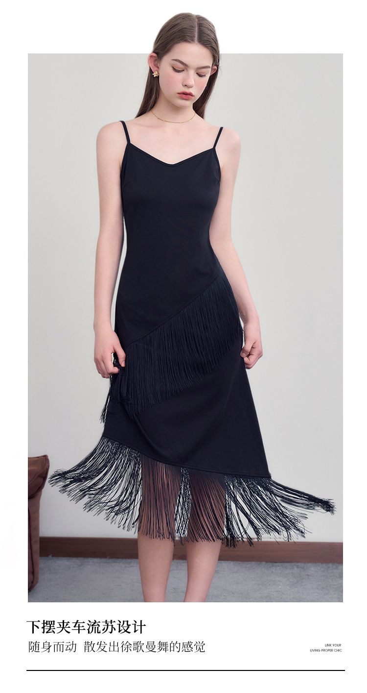 简约高级感肌理流光流苏吊带裙女早春V领宴会裙连衣裙V3042331