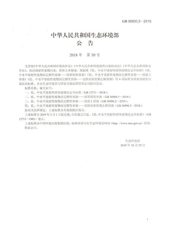 GB36900.2—2018 低、中水平放射性废物高完整性容器 ——混凝土容器 135111713