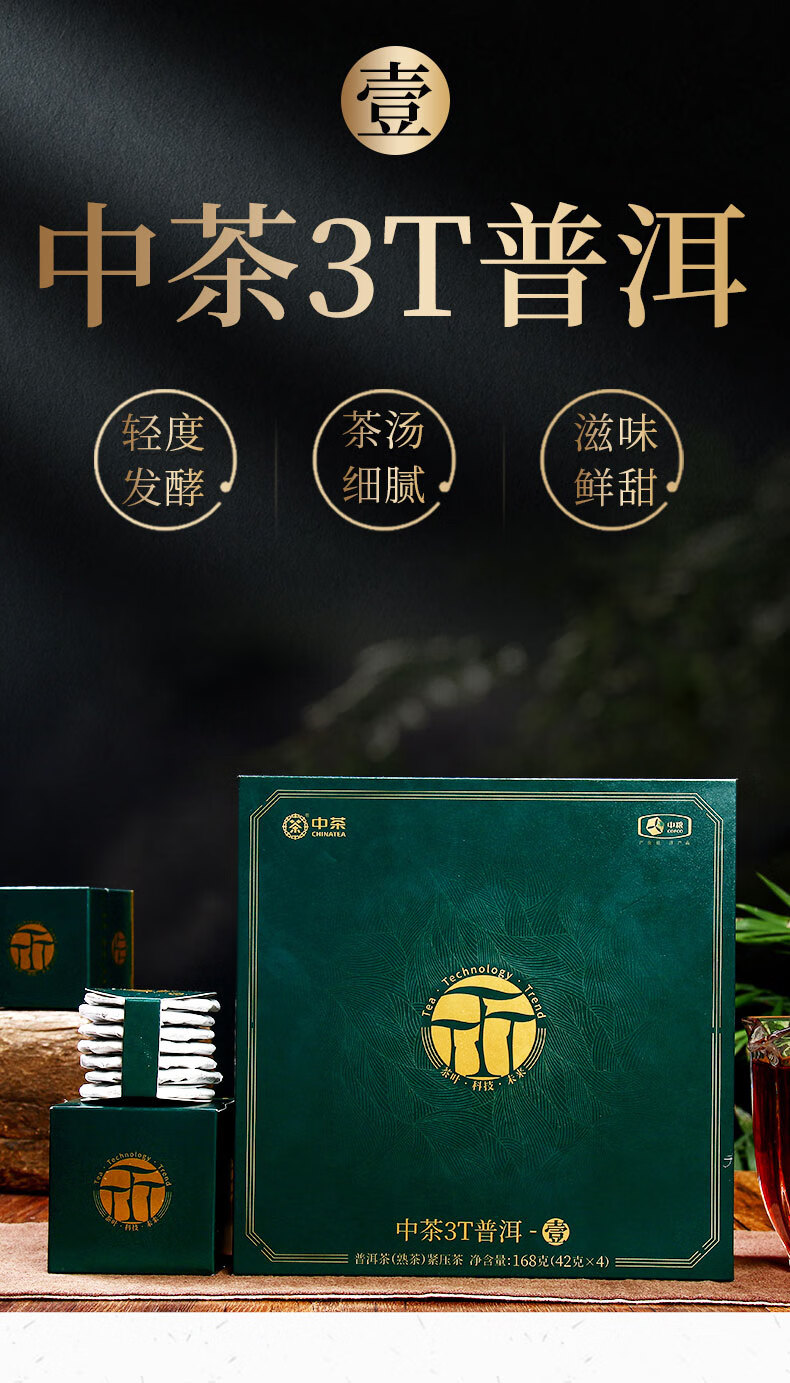 《中粮-中茶》普洱茶熟茶 2022年3T普洱-壹 168g/盒