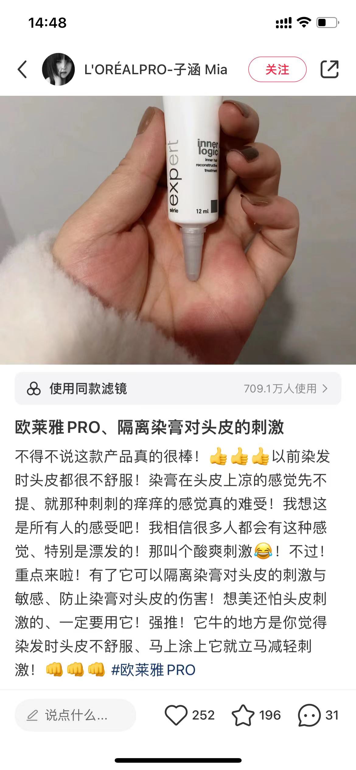 【品名】欧莱雅沙龙洗护新秀发锁护乳12ml*6支/盒