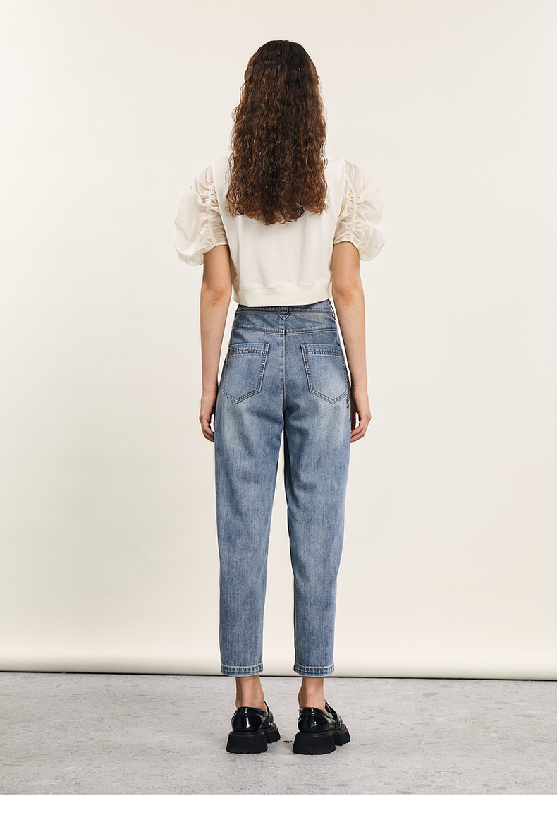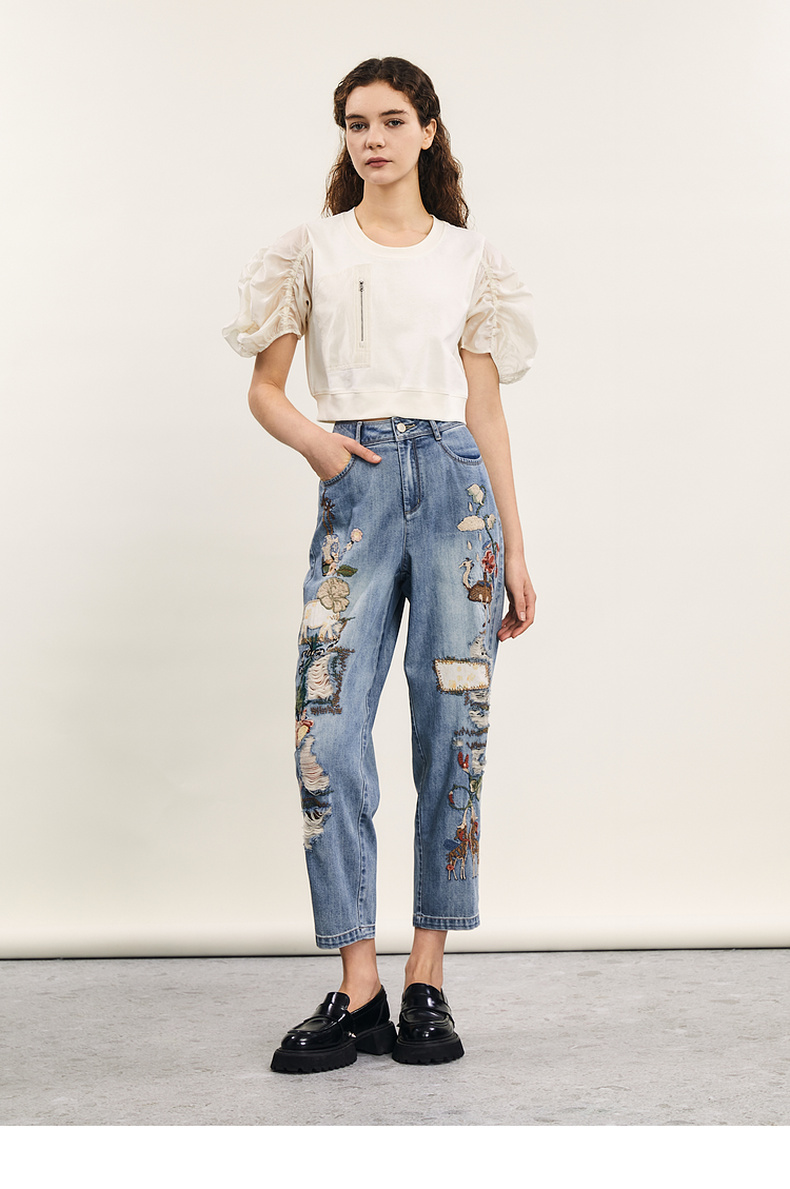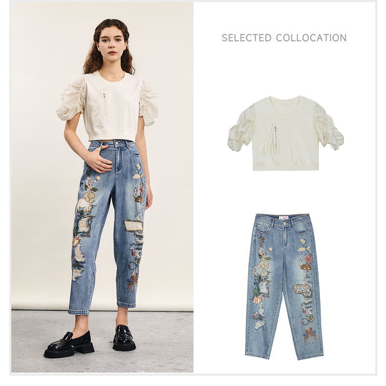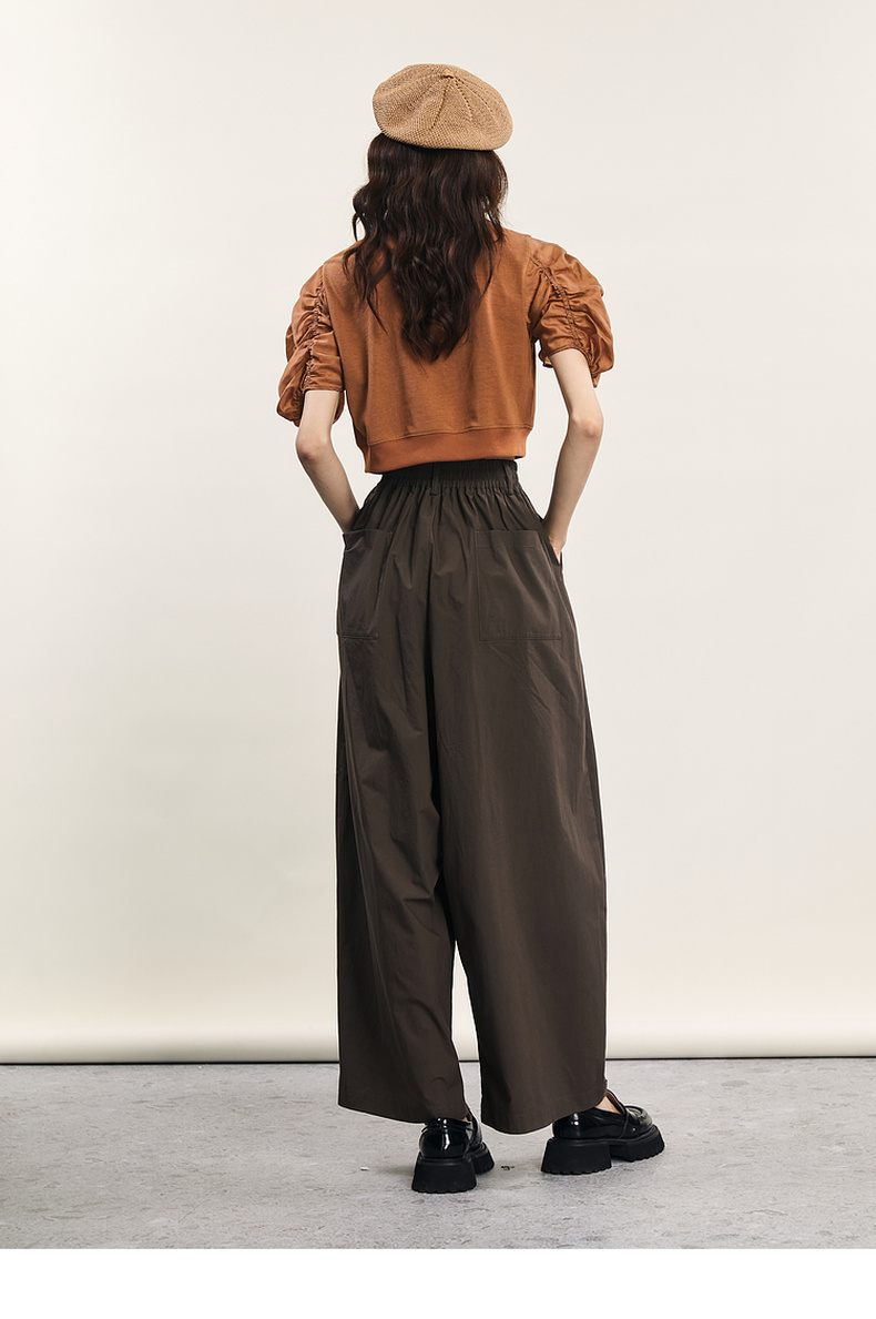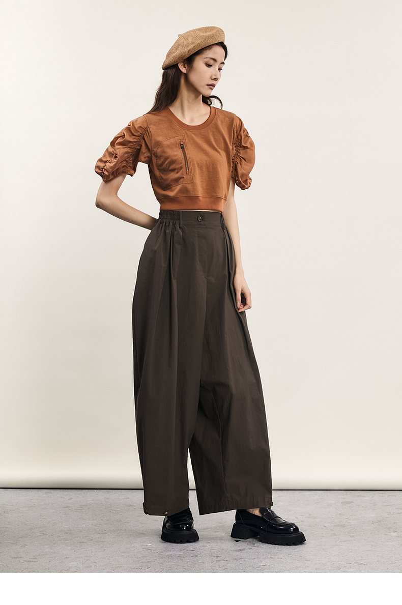 谜底拼接式短款T恤女2024年夏款时尚百搭泡泡袖上衣短袖242MT0567