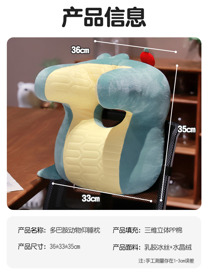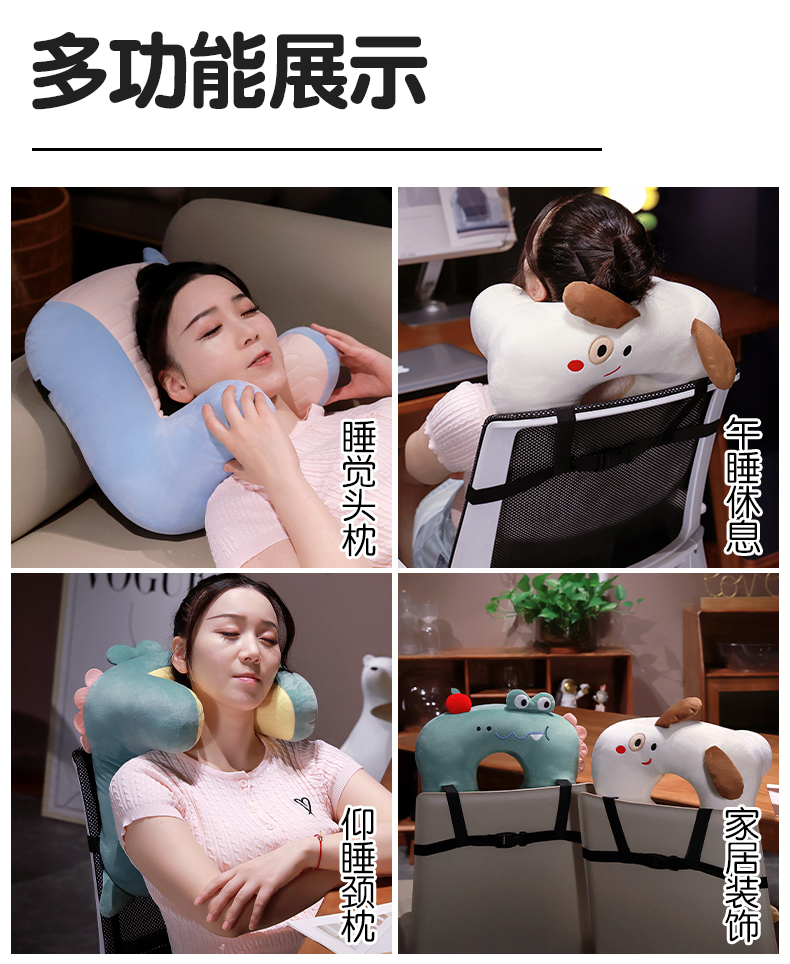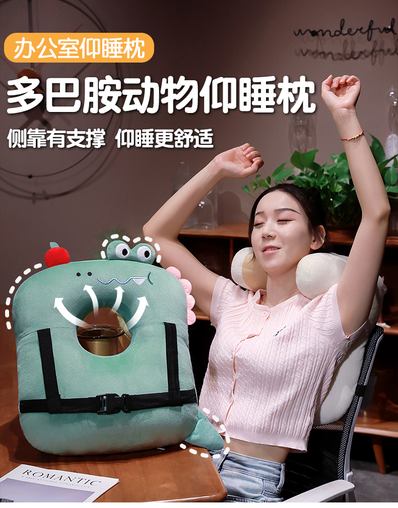 自然醒多巴胺动物仰睡枕办公室午休神器护颈靠枕睡觉抱枕趴睡枕QYL