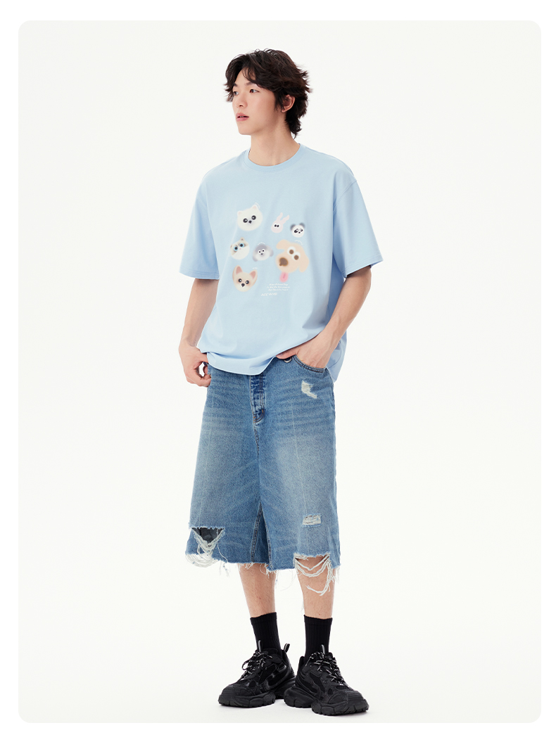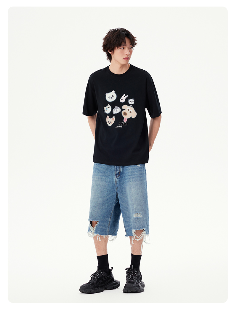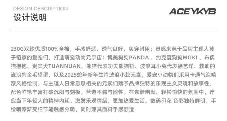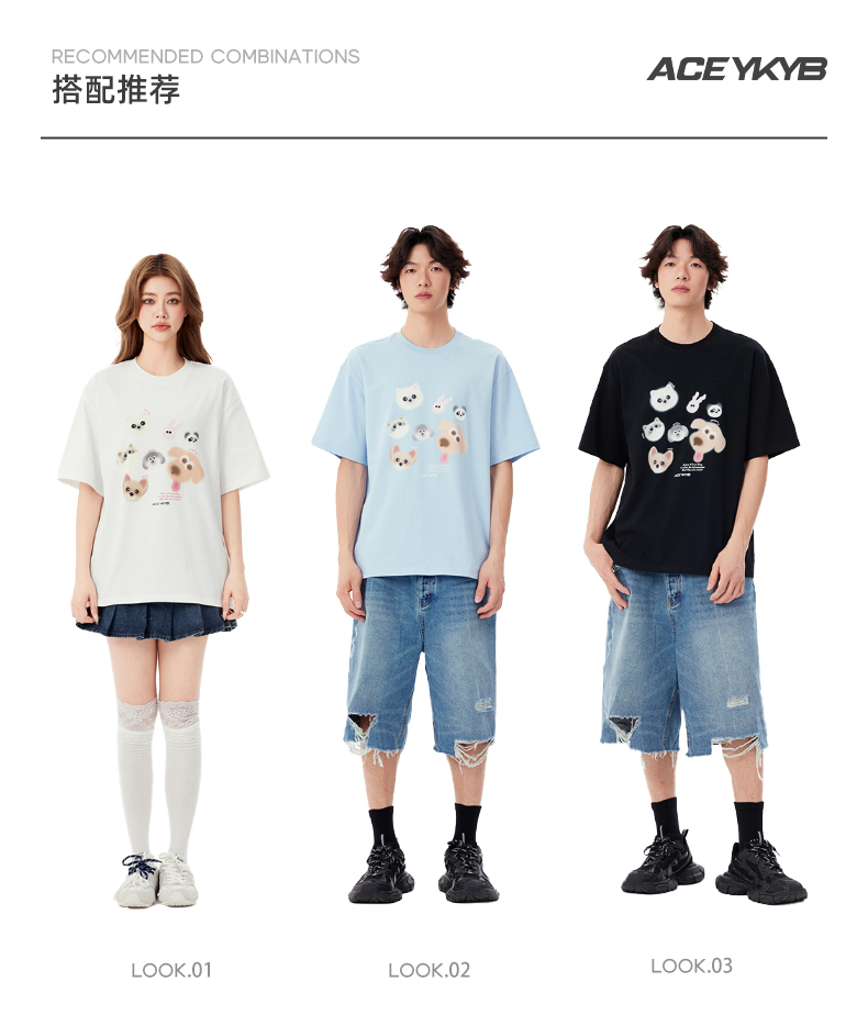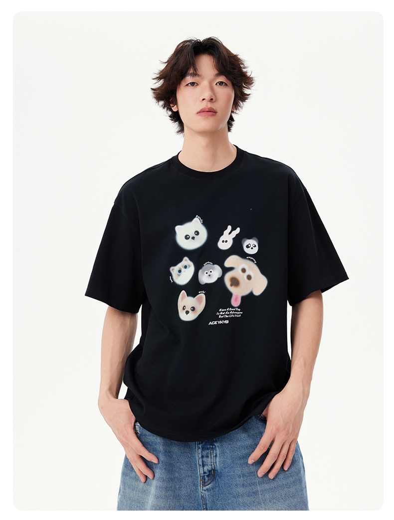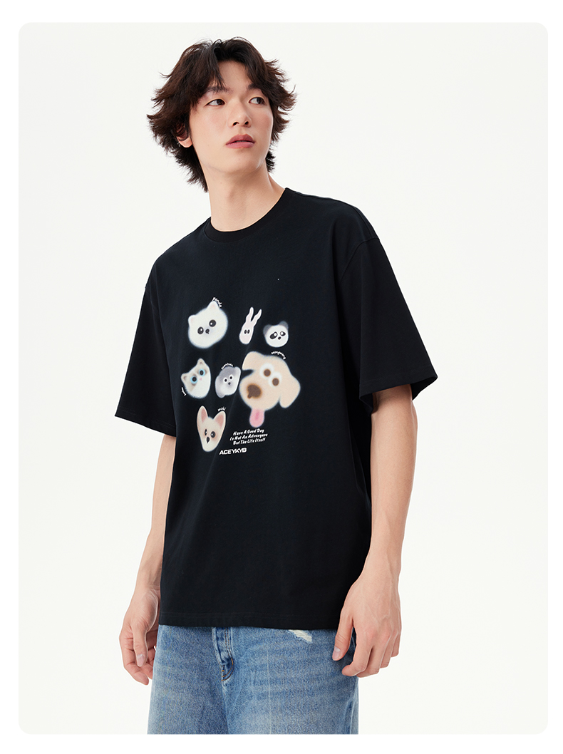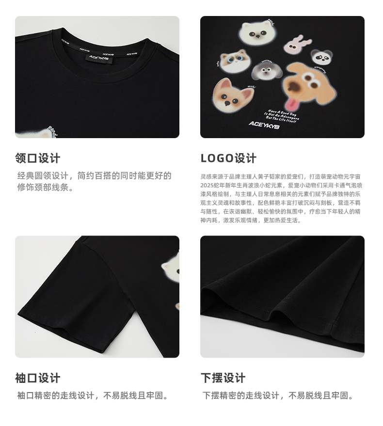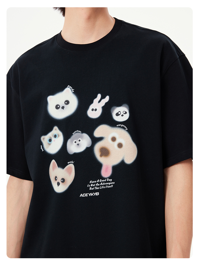 YKYB黄子韬短袖T恤全棉舒适透气耐穿手绘萌宠上衣Y52NDT058