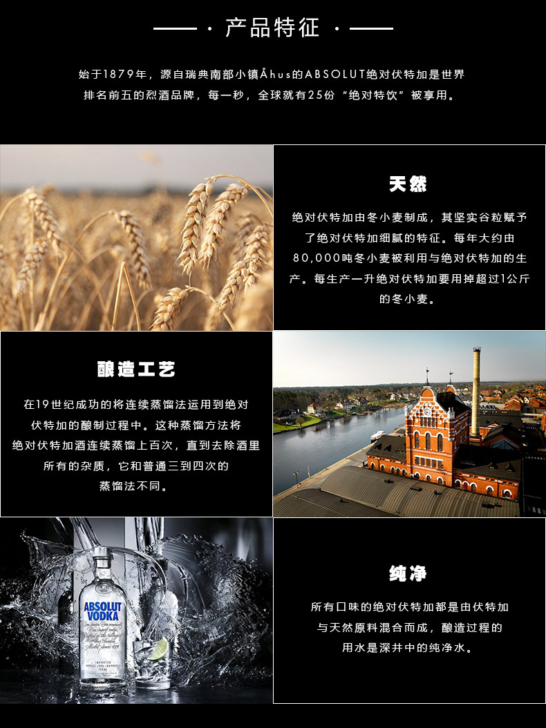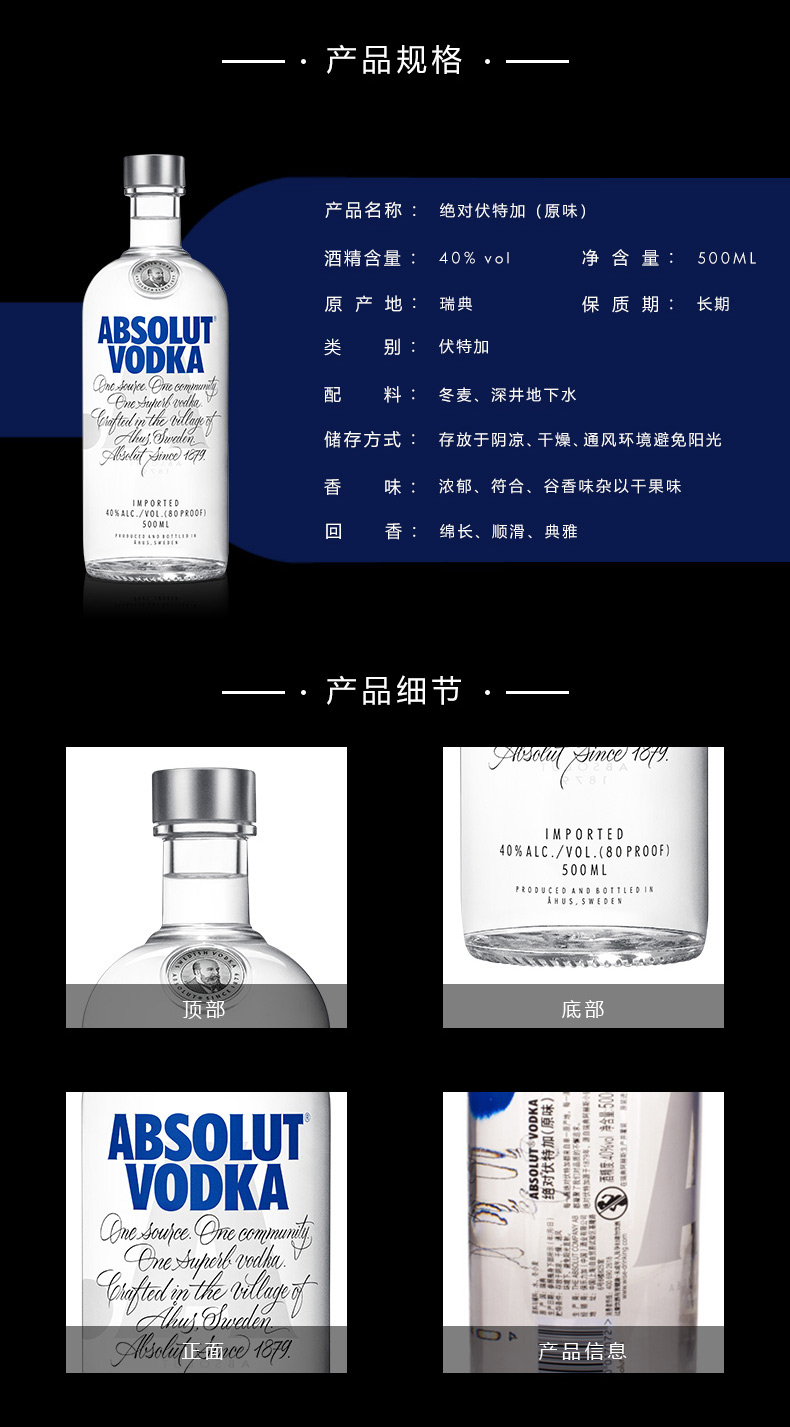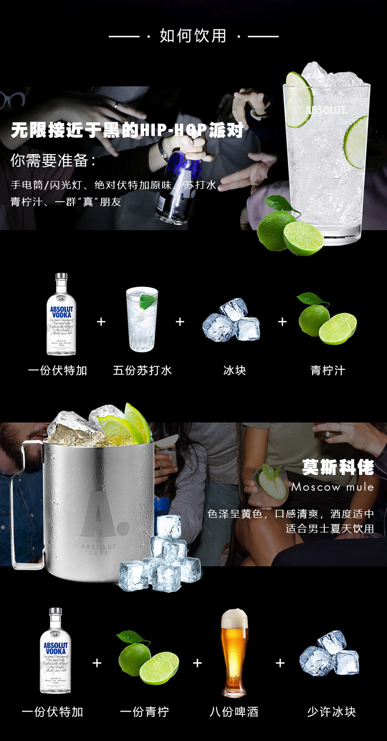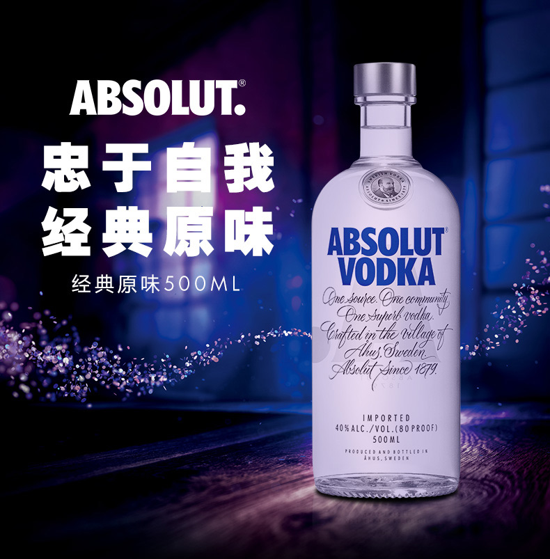 Absolut绝对伏特加原味700ml洋酒鸡尾酒基酒