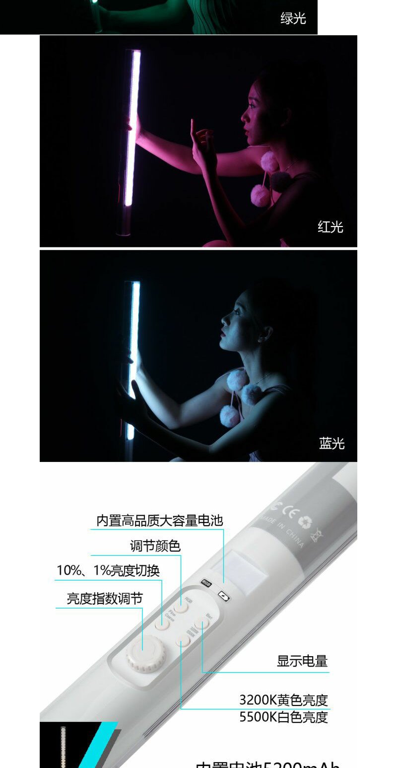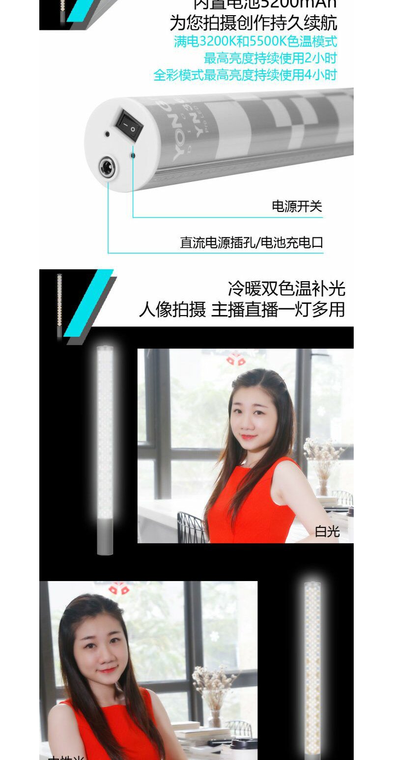 永诺 YN360II二代LED摄像灯可调色温RGB全彩棒灯 手持补光灯冰灯抖音灯摄影灯 YN360II 内置电池+充电器