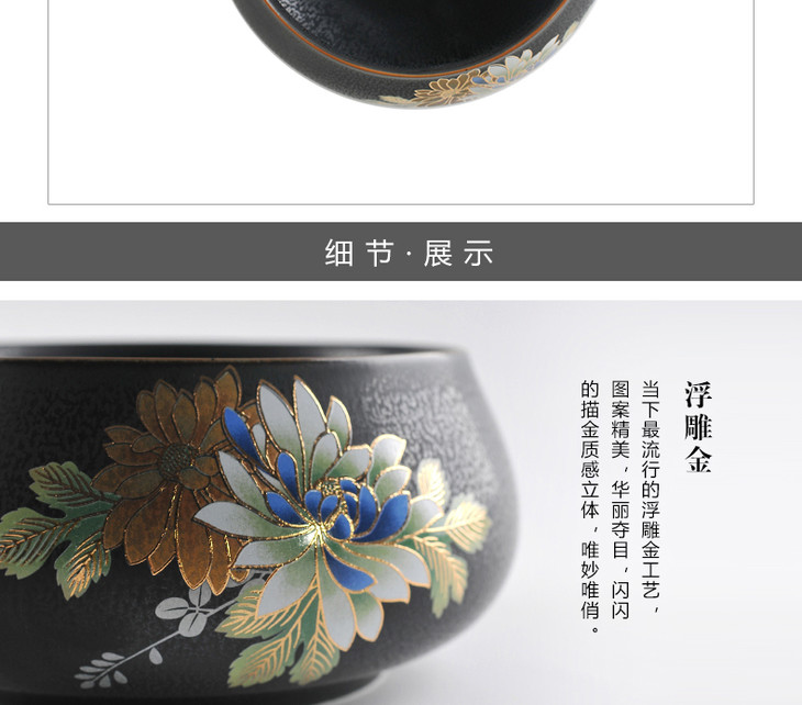 【清仓特惠7.5折】成艺陶瓷大茶壶家用套装提梁壶功夫茶具茶杯泡茶壶描金中式礼盒装花韵古道壶7入