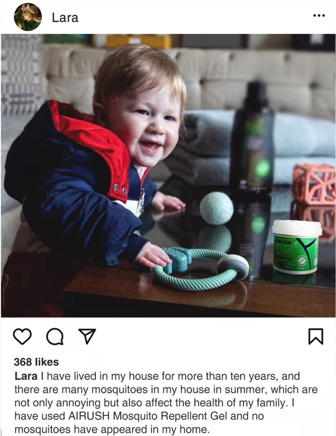 夏天女儿常被虫子吓哭、咬伤,皮肤也经常瘙痒过敏。自从在家放了AIRUSH后,女儿再也没被虫子骚扰,皮肤也保持健康!