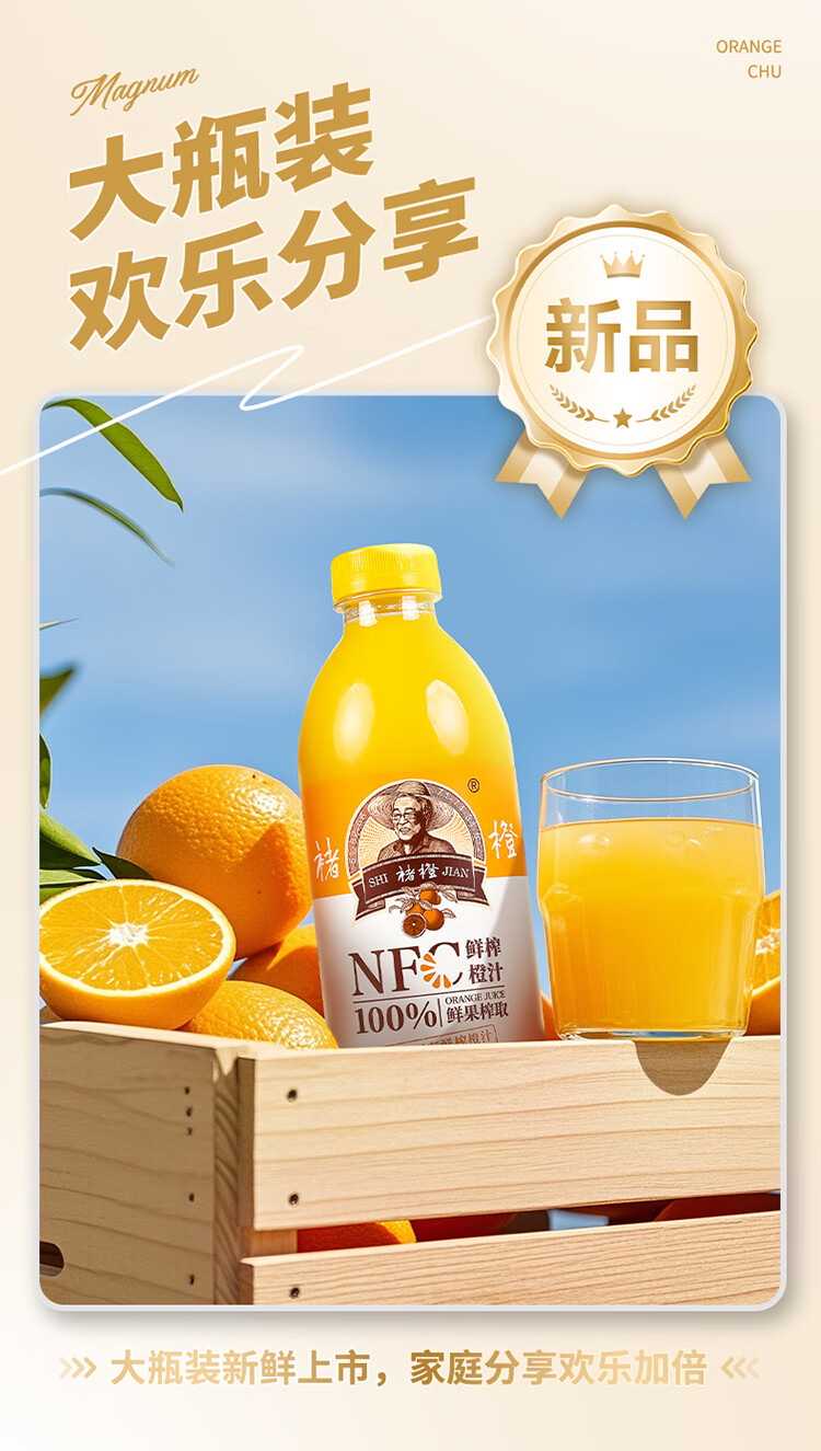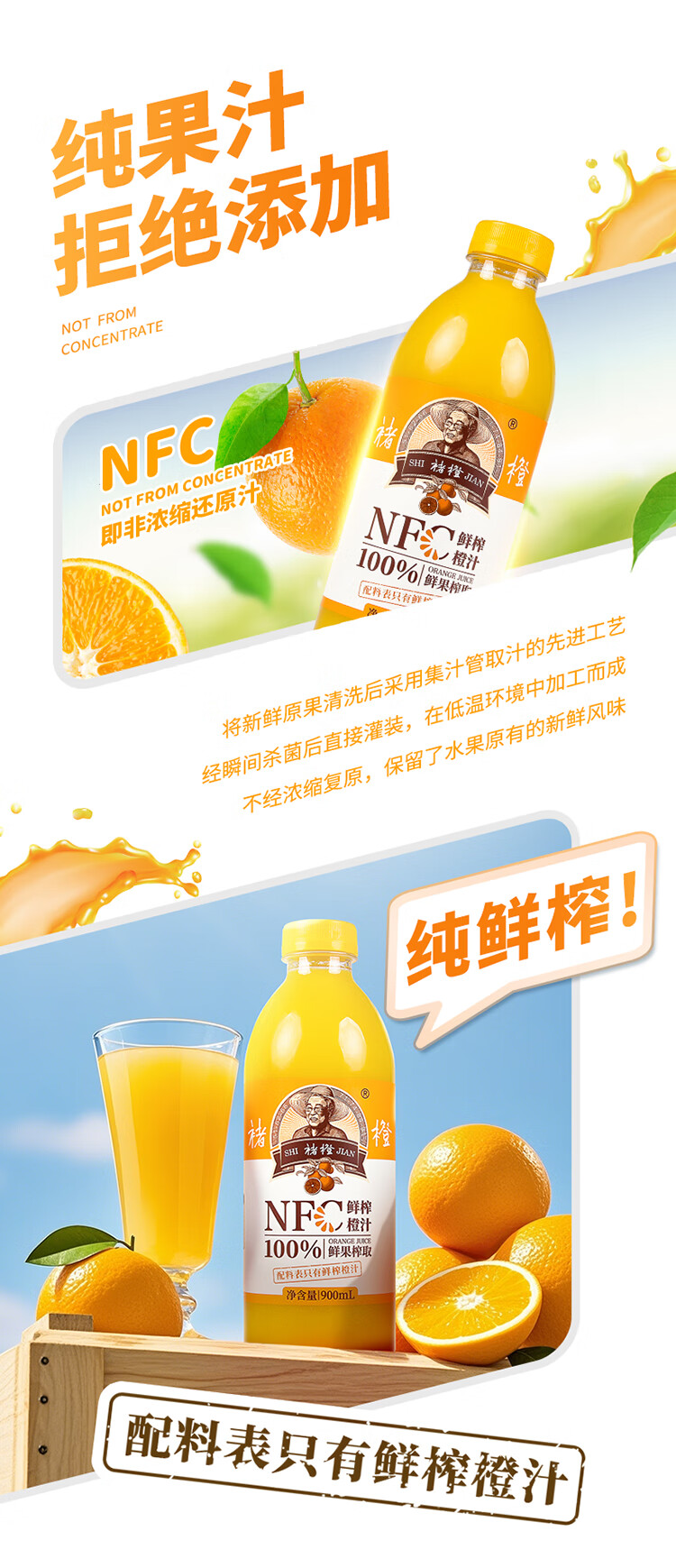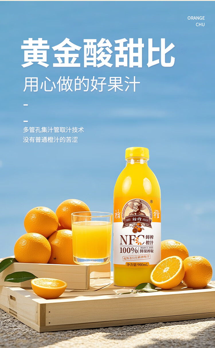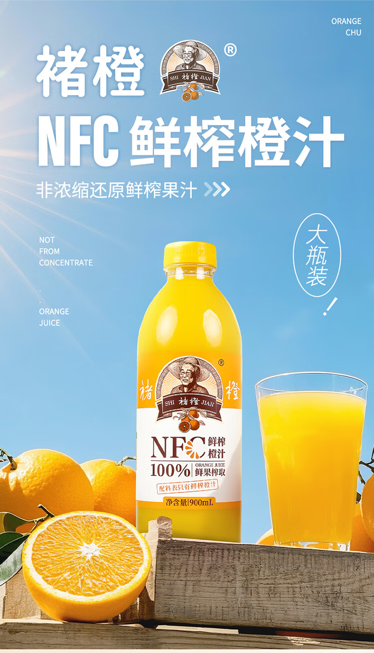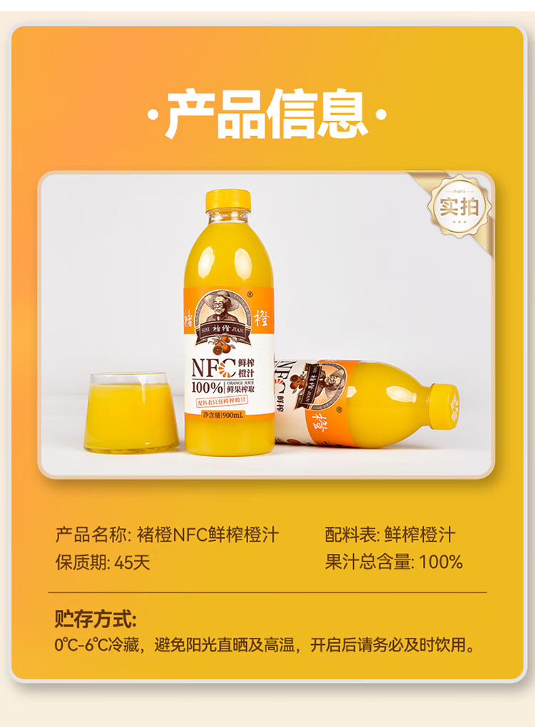 实建褚橙NFC橙汁900ml
