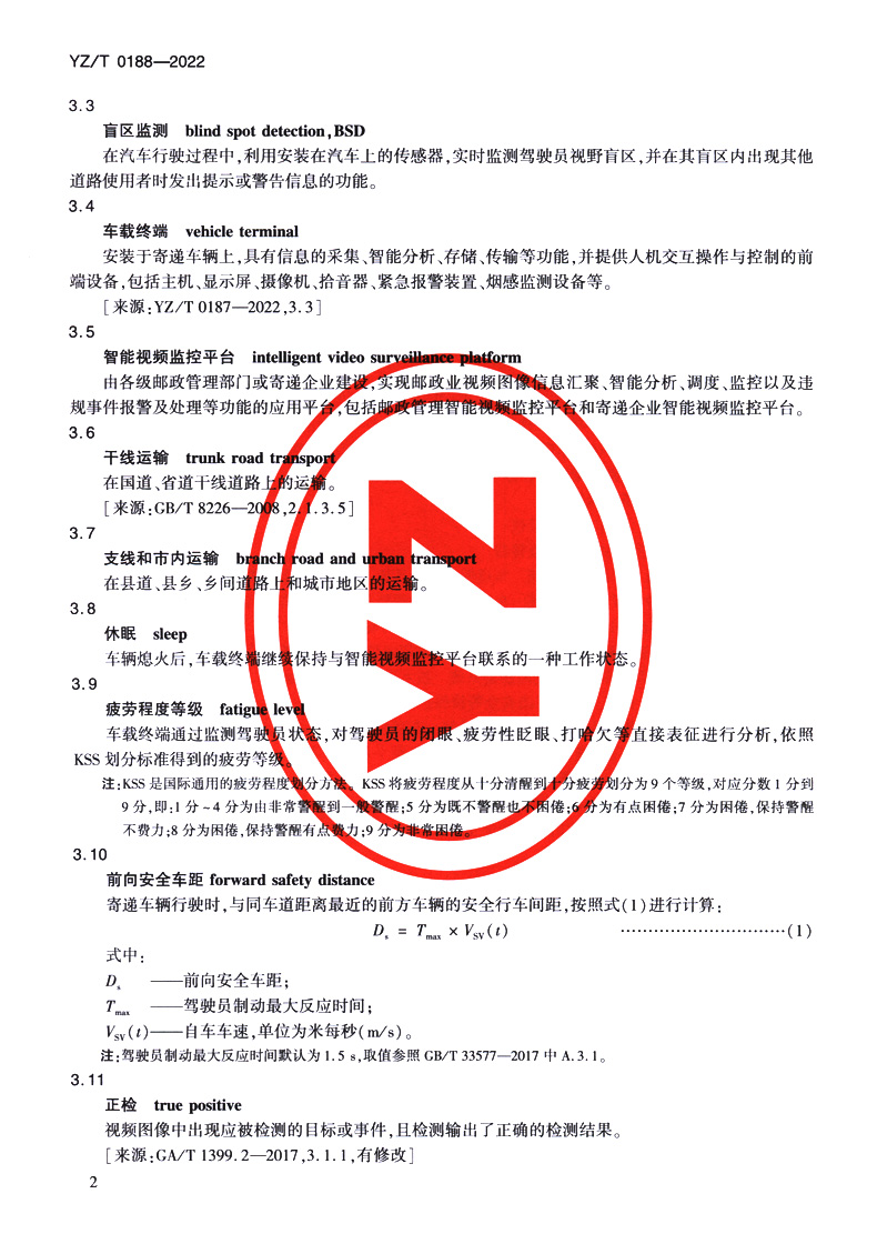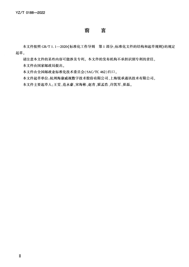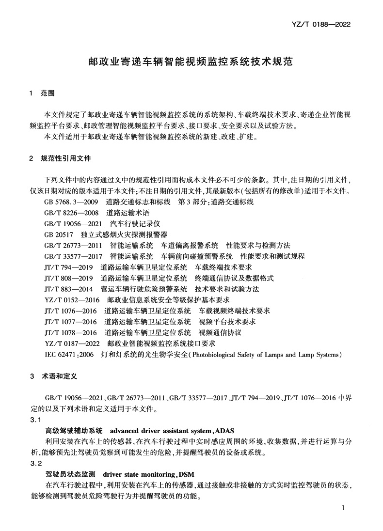 书名:邮政业寄递车辆智能视频监控系统技术规范(YZ/T 0188—2022)