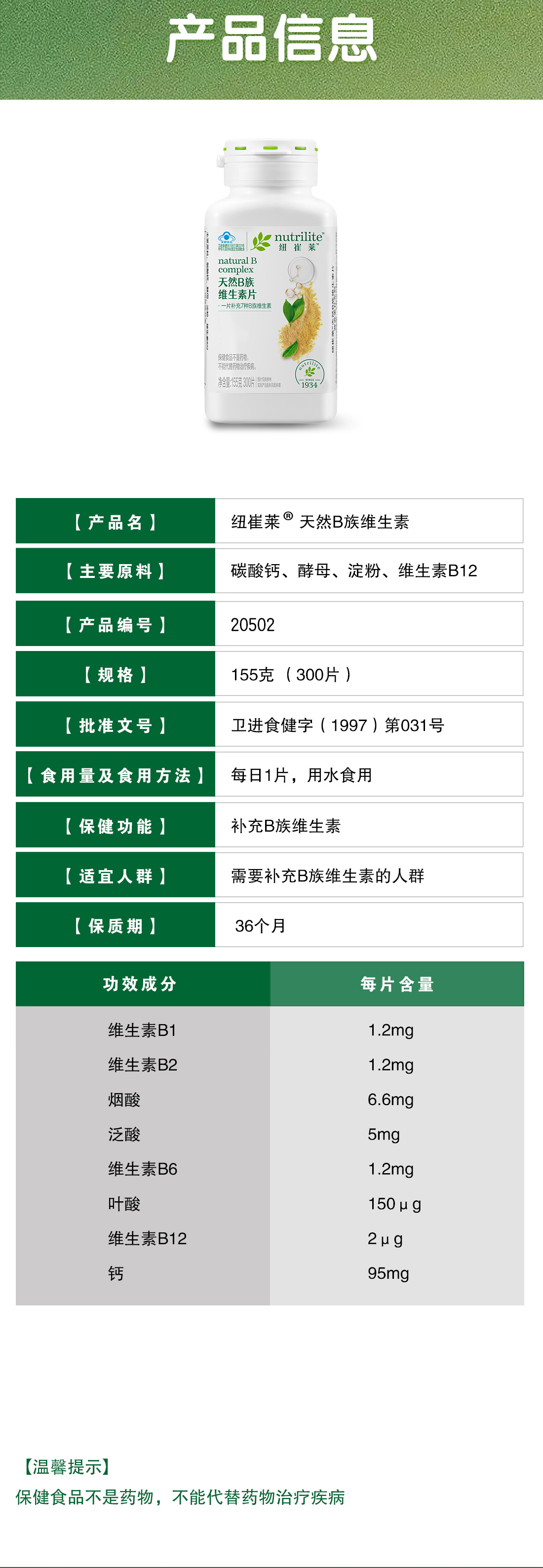 安利纽崔莱®天然B族维生素片300片 7种B族维生素