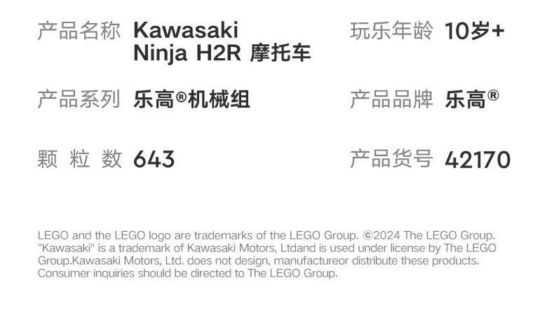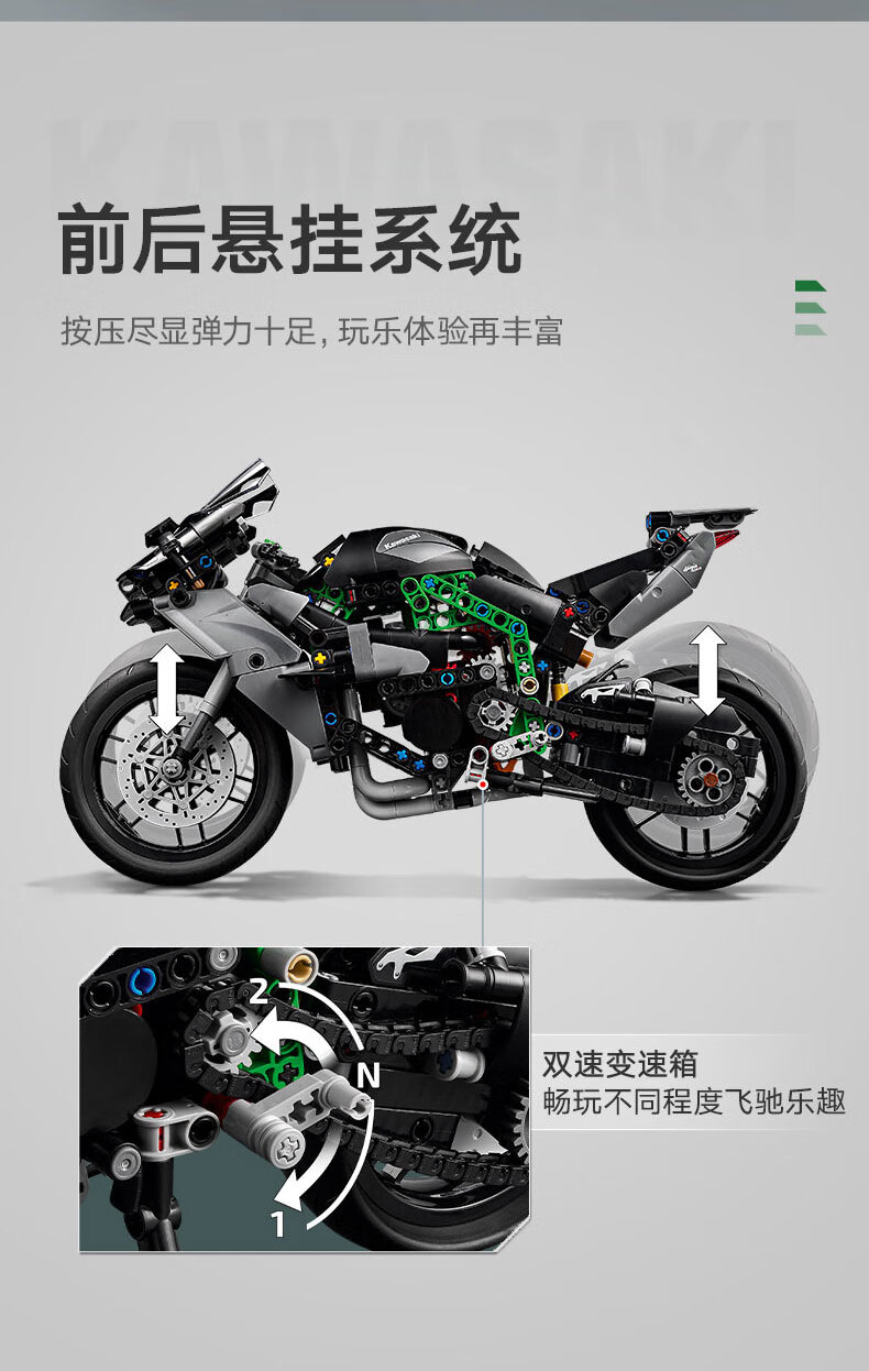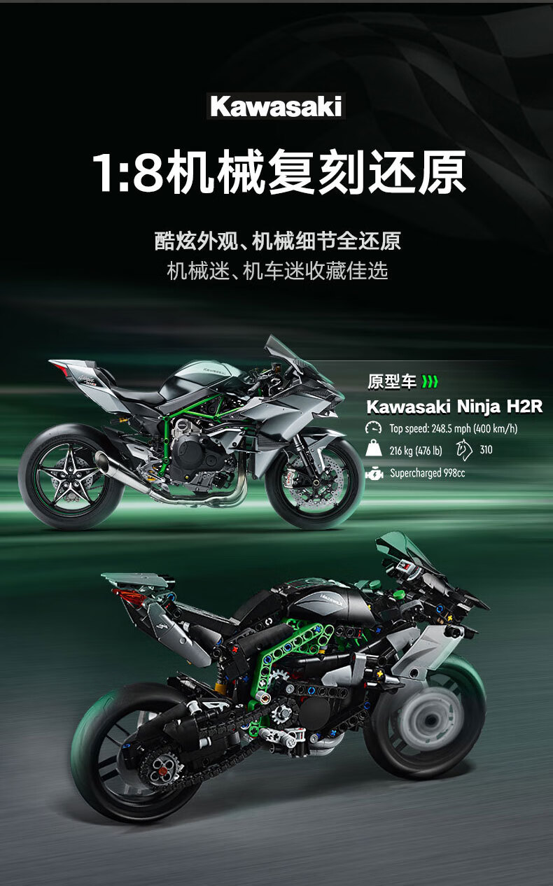 乐高积木L42170乐高机械组系列 Kawasaki Ninja H2R 摩托车