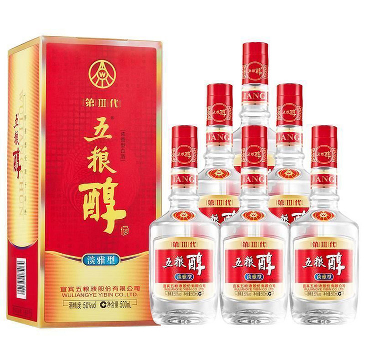 五粮醇第三代-淡雅型 50度浓香型白酒 整箱6瓶*500ml包邮