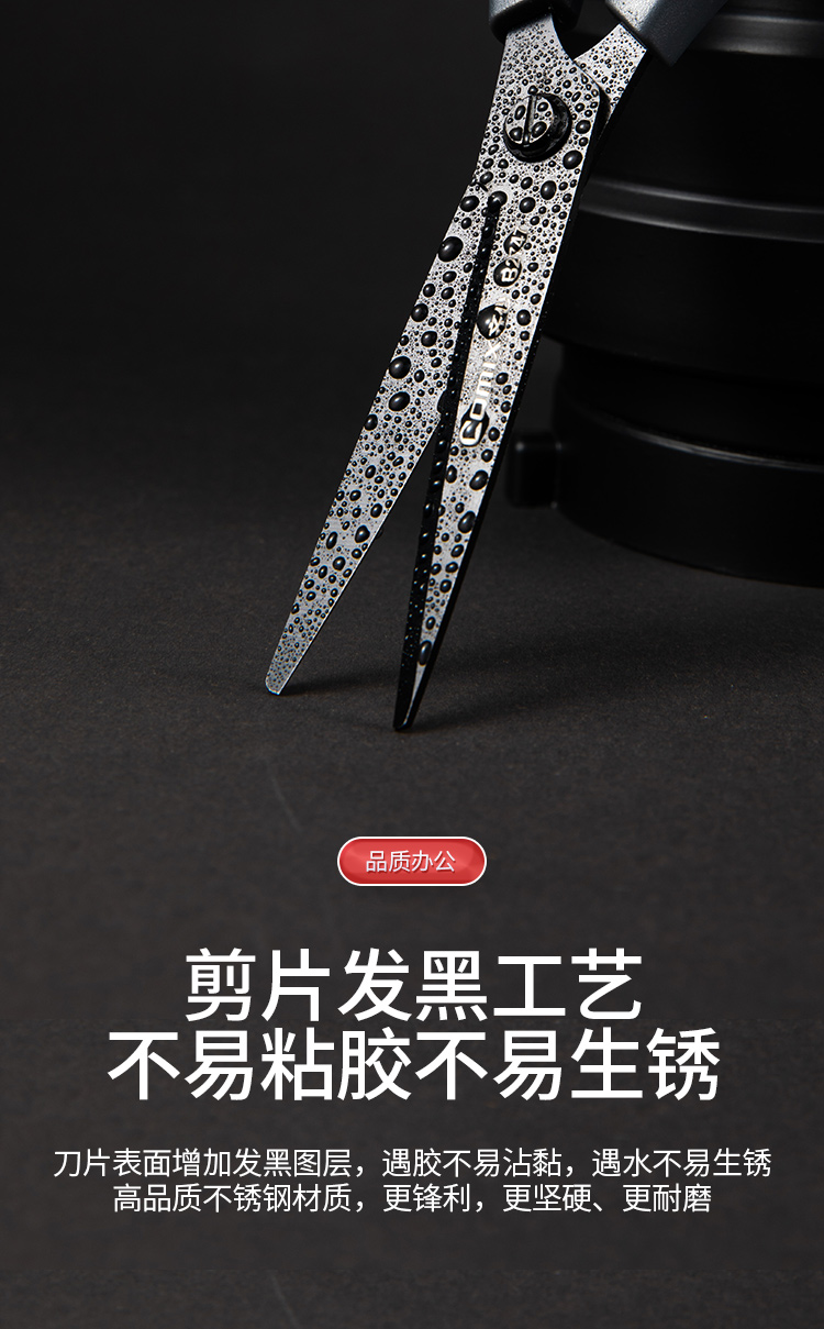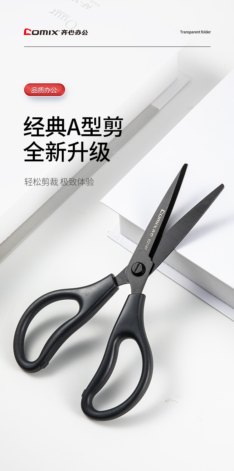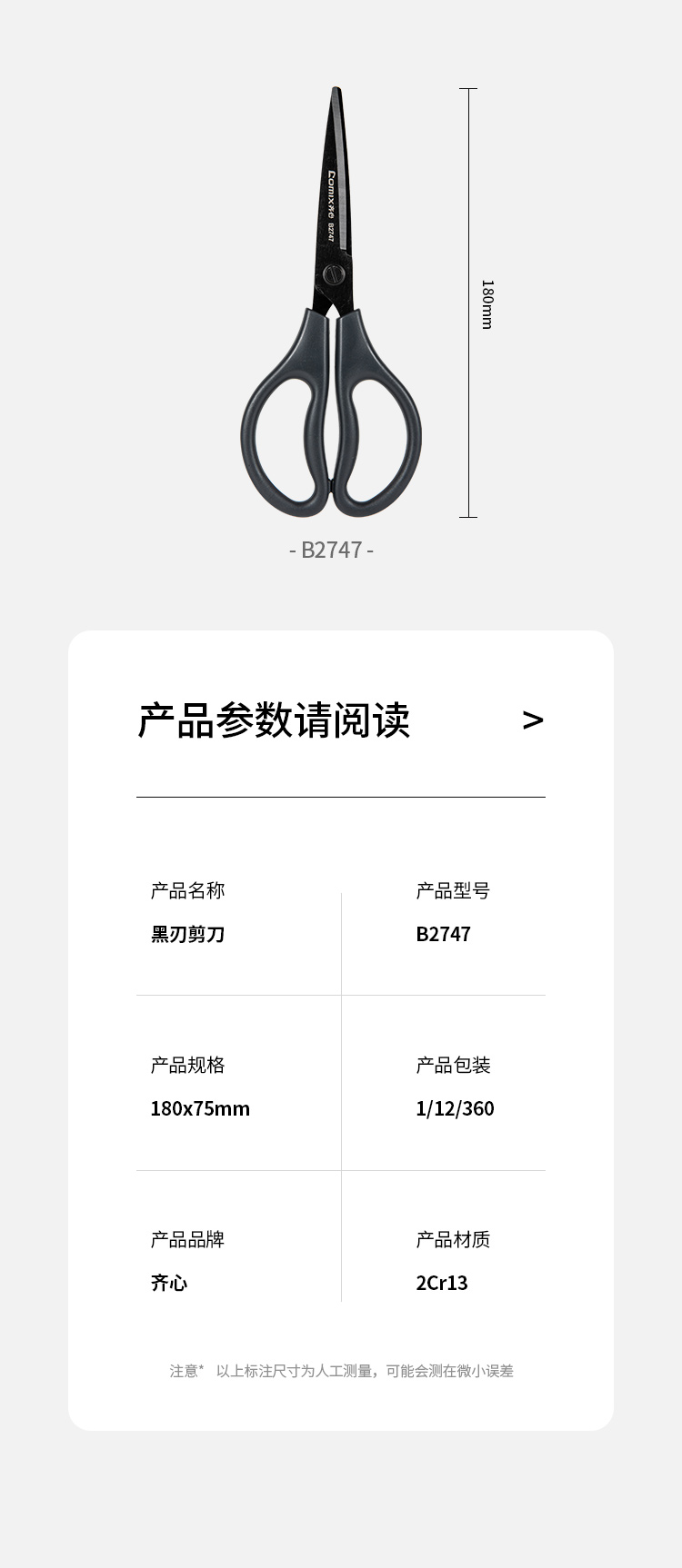 齐心黑刃剪刀 180mm 大号防锈耐磨剪刀 1把
