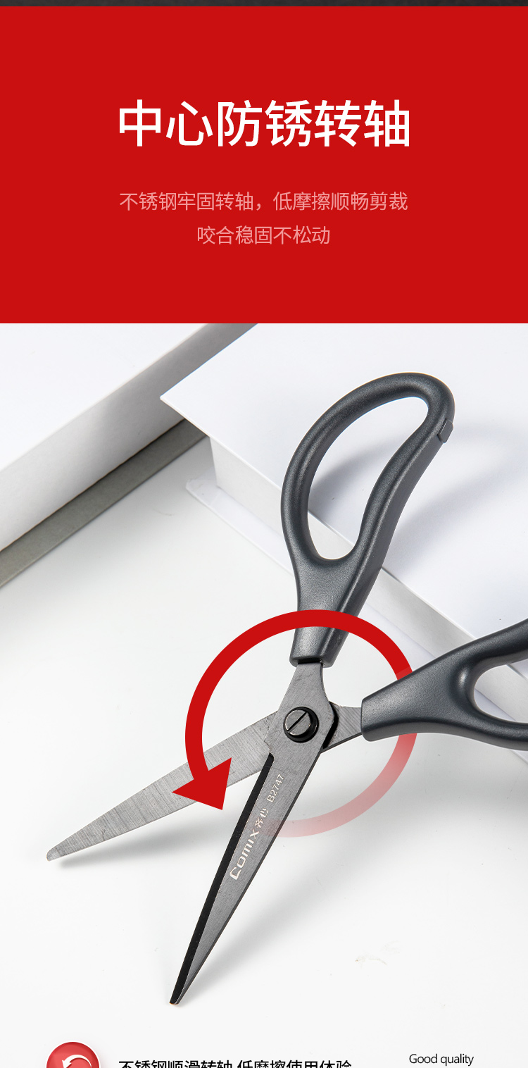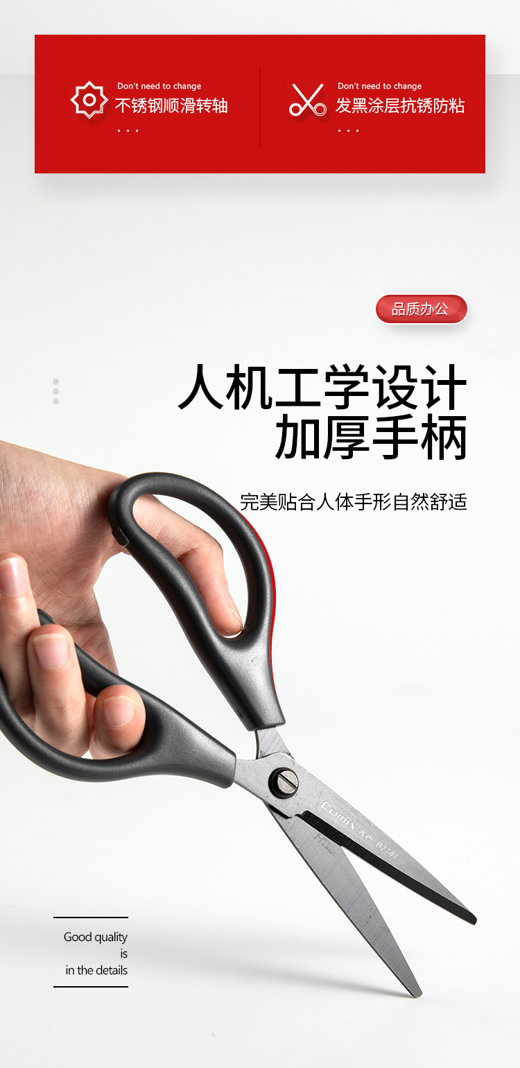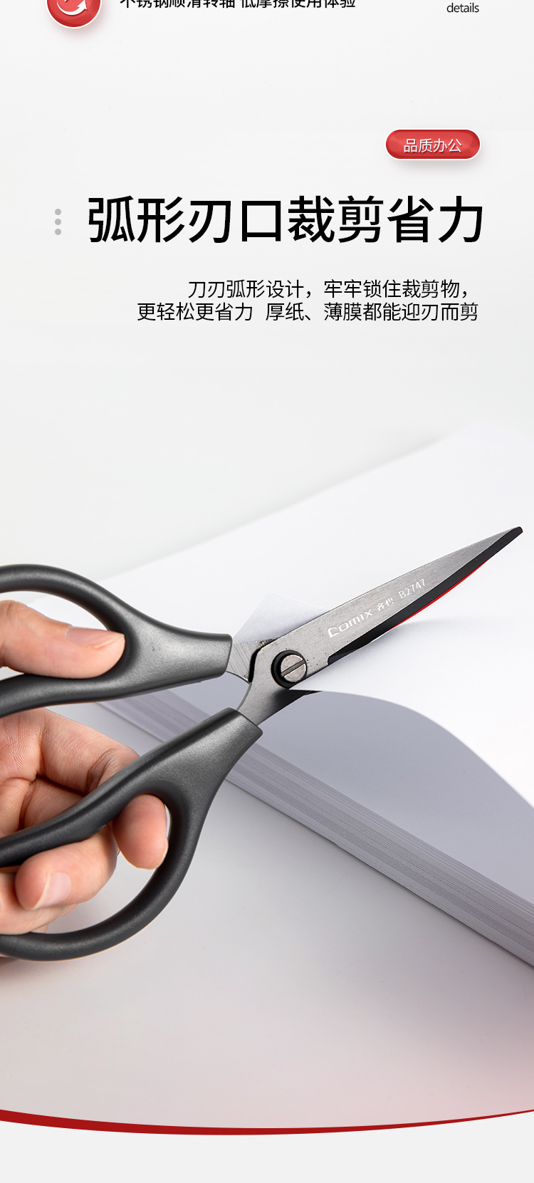 齐心黑刃剪刀 180mm 大号防锈耐磨剪刀 1把