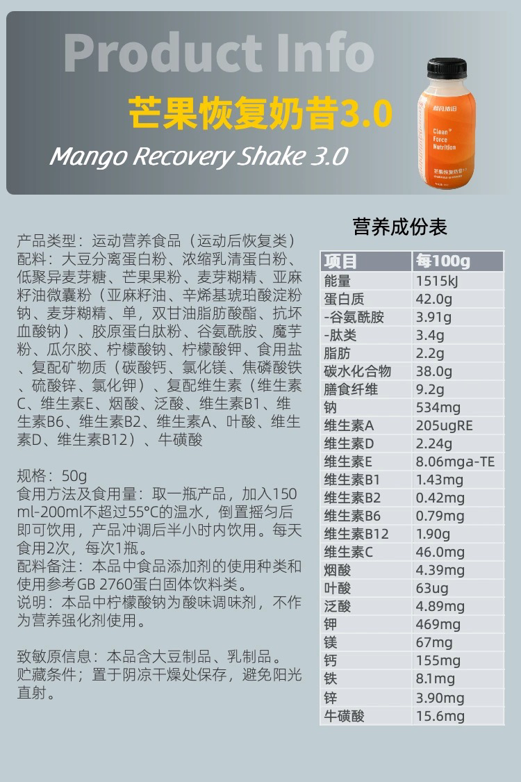 超凡依旧 运动后恢复奶昔3.0 高蛋白质缓解肌肉酸痛 营养补充