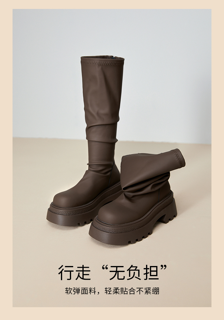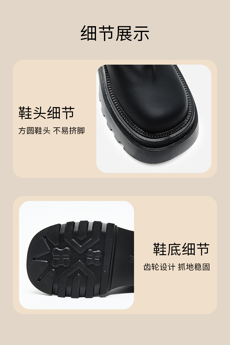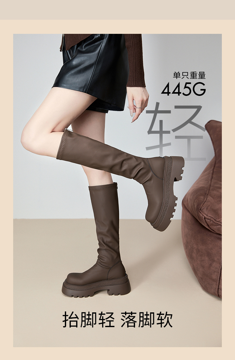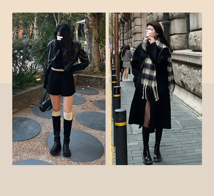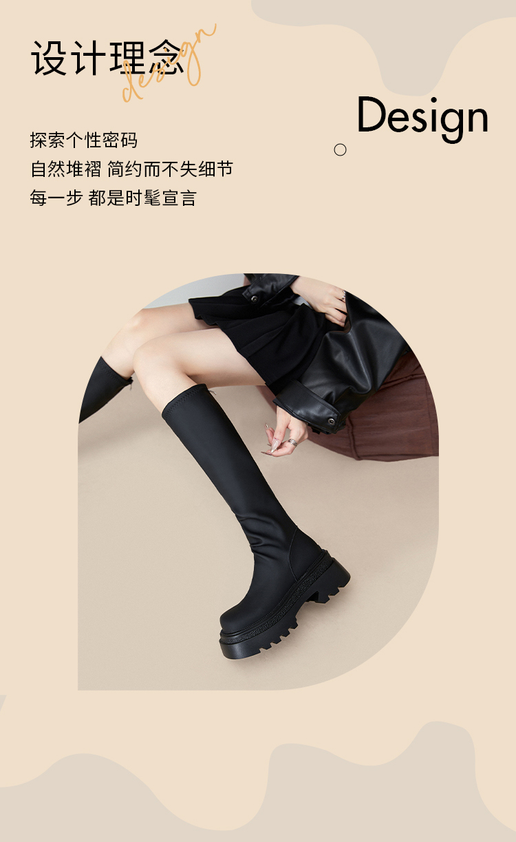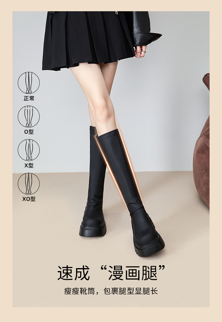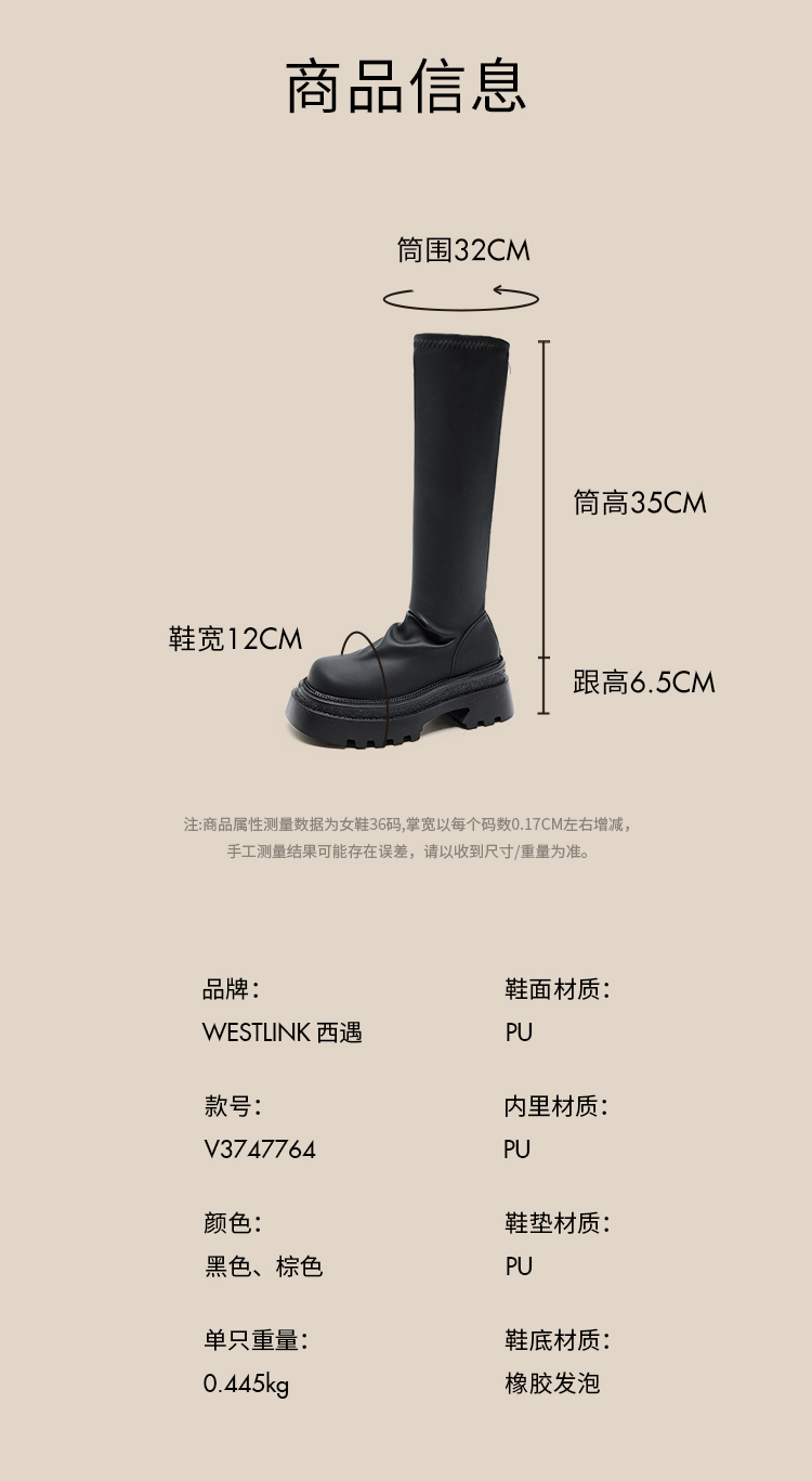 西遇增高长筒骑士靴女新款秋冬小个子法式不过膝厚底高靴黑色长靴V3747764