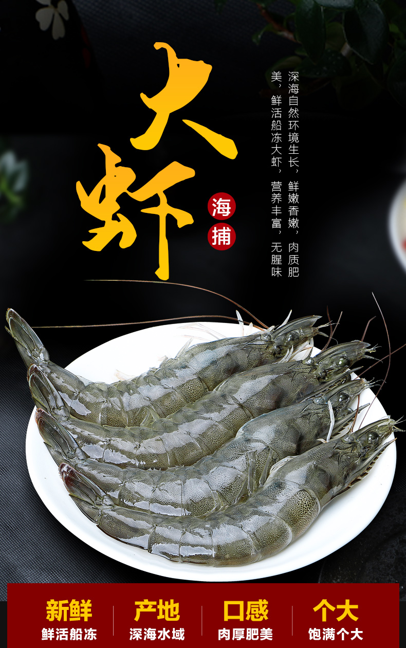盐冻野生青岛大虾 干净海域捕捞 鲜活急冻锁鲜 紧致鲜香