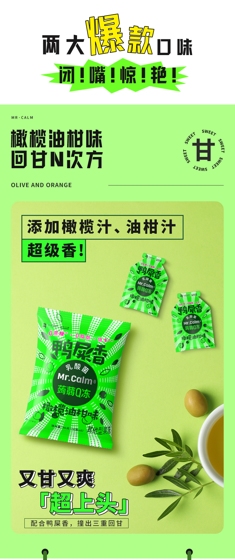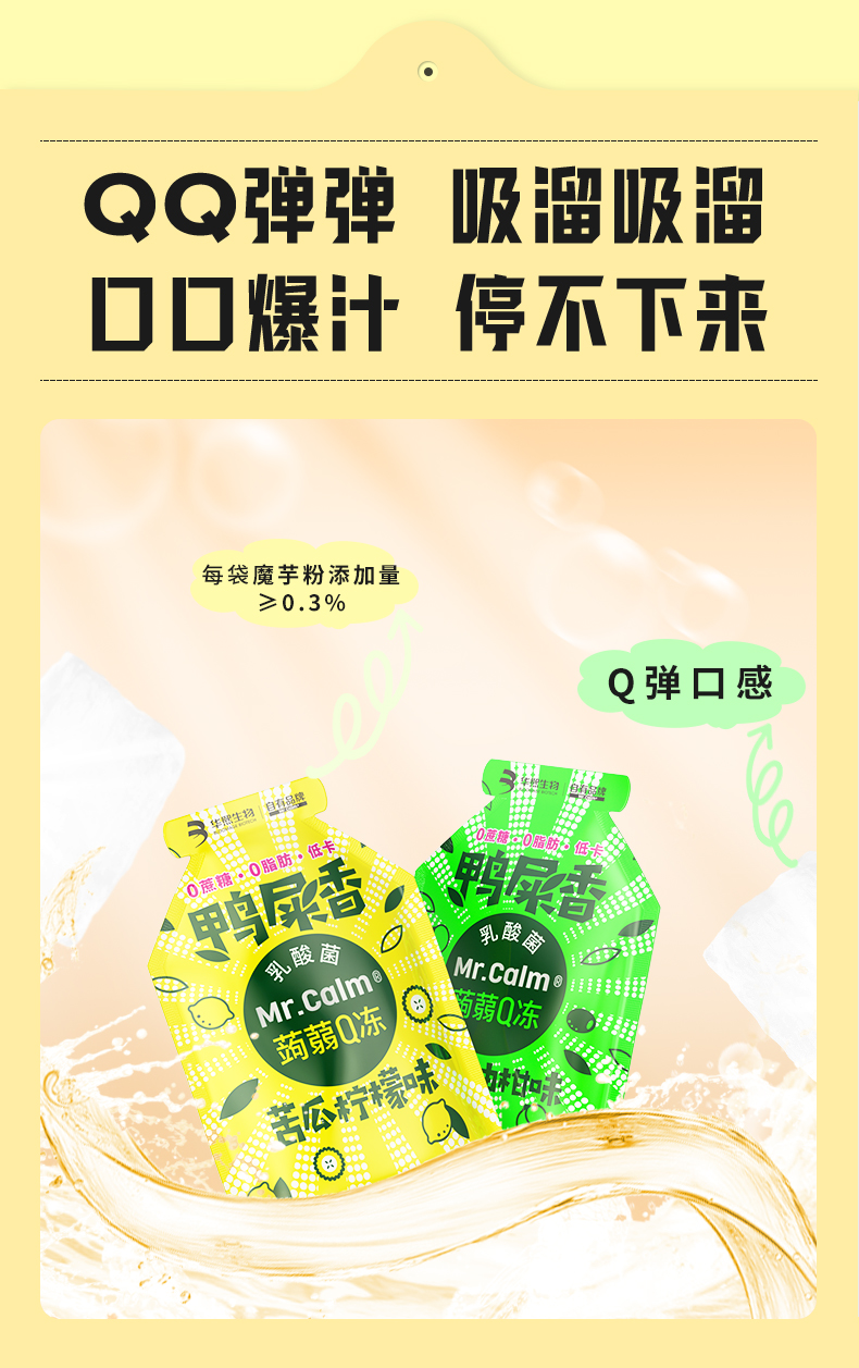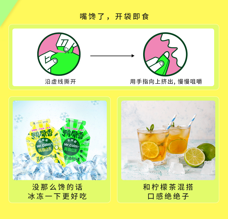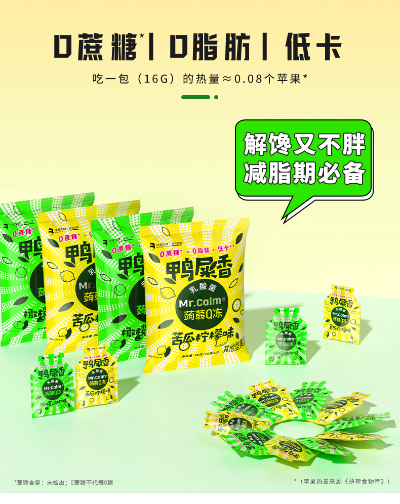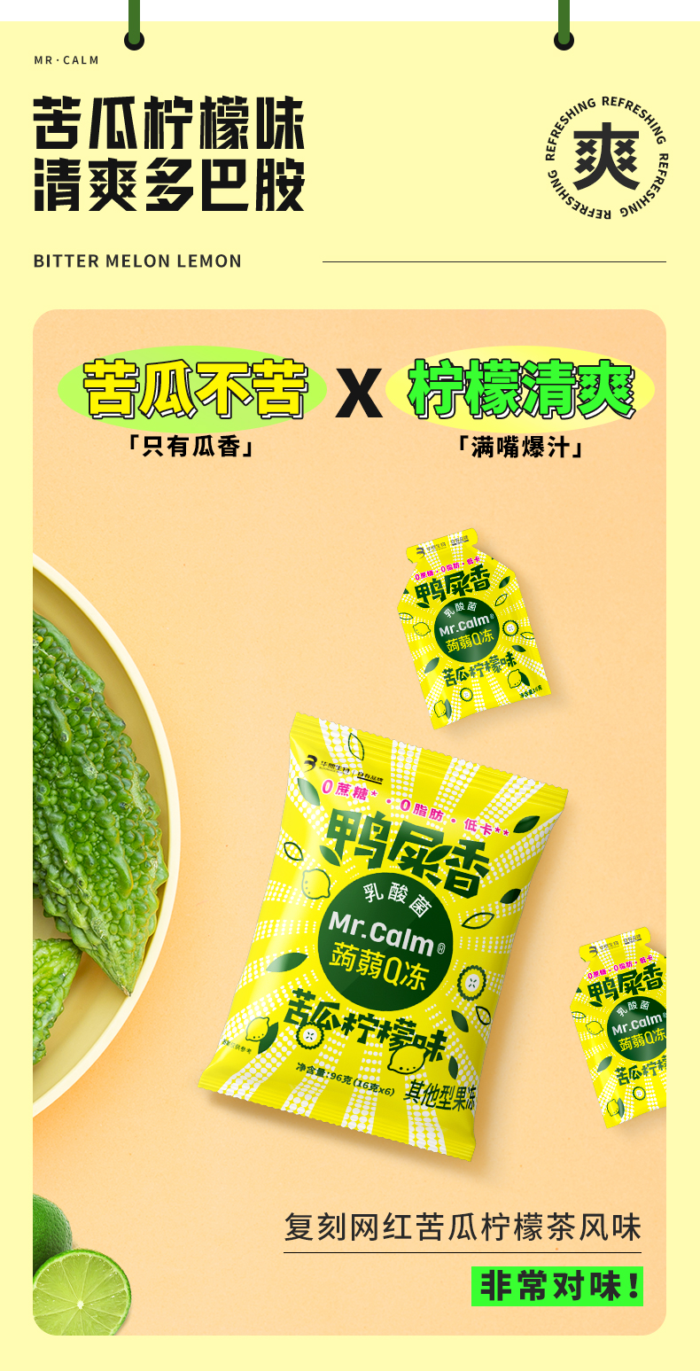 【到手6包】Mr.Calm乳酸菌蒟蒻Q冻鸭屎香橄榄油柑味[16克* 6包/袋]*3+苦瓜柠檬味[16克* 6包/袋]*3