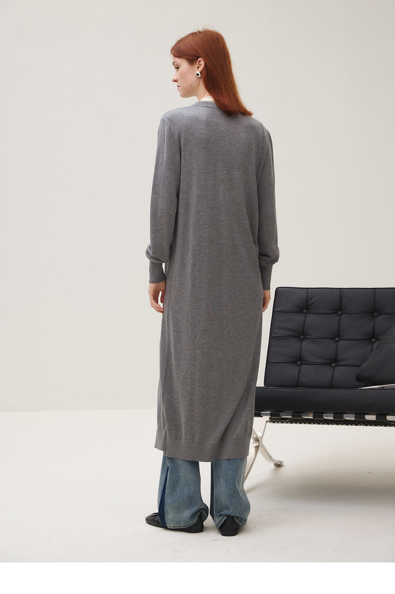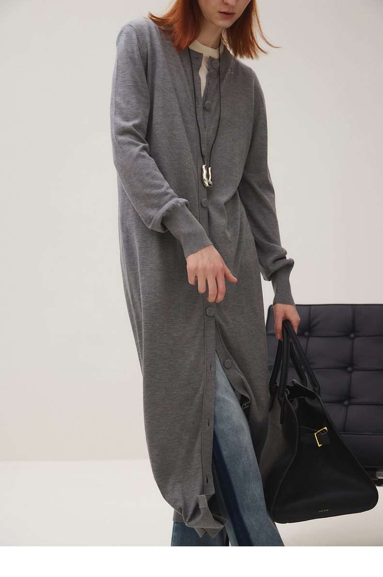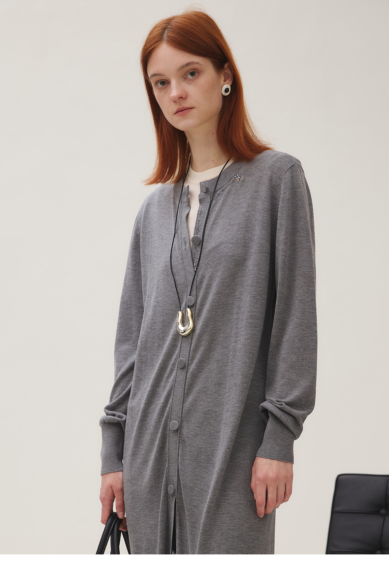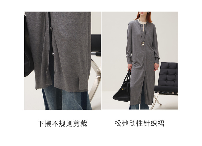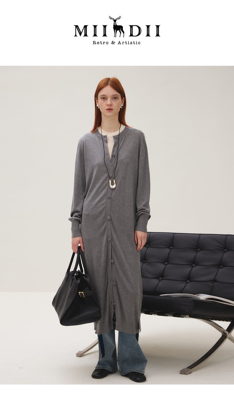 谜底长针织开衫女2025秋季新品简约松弛感圆领百搭毛衫253MZ1318