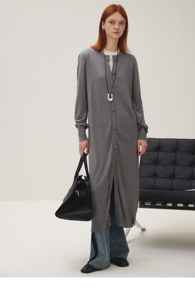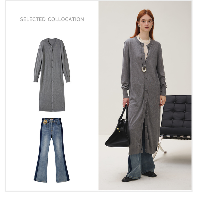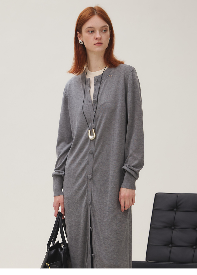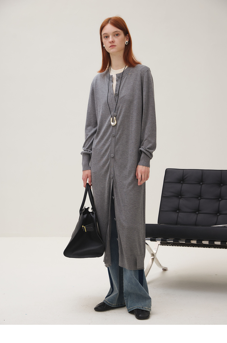谜底长针织开衫女2025秋季新品简约松弛感圆领百搭毛衫253MZ1318