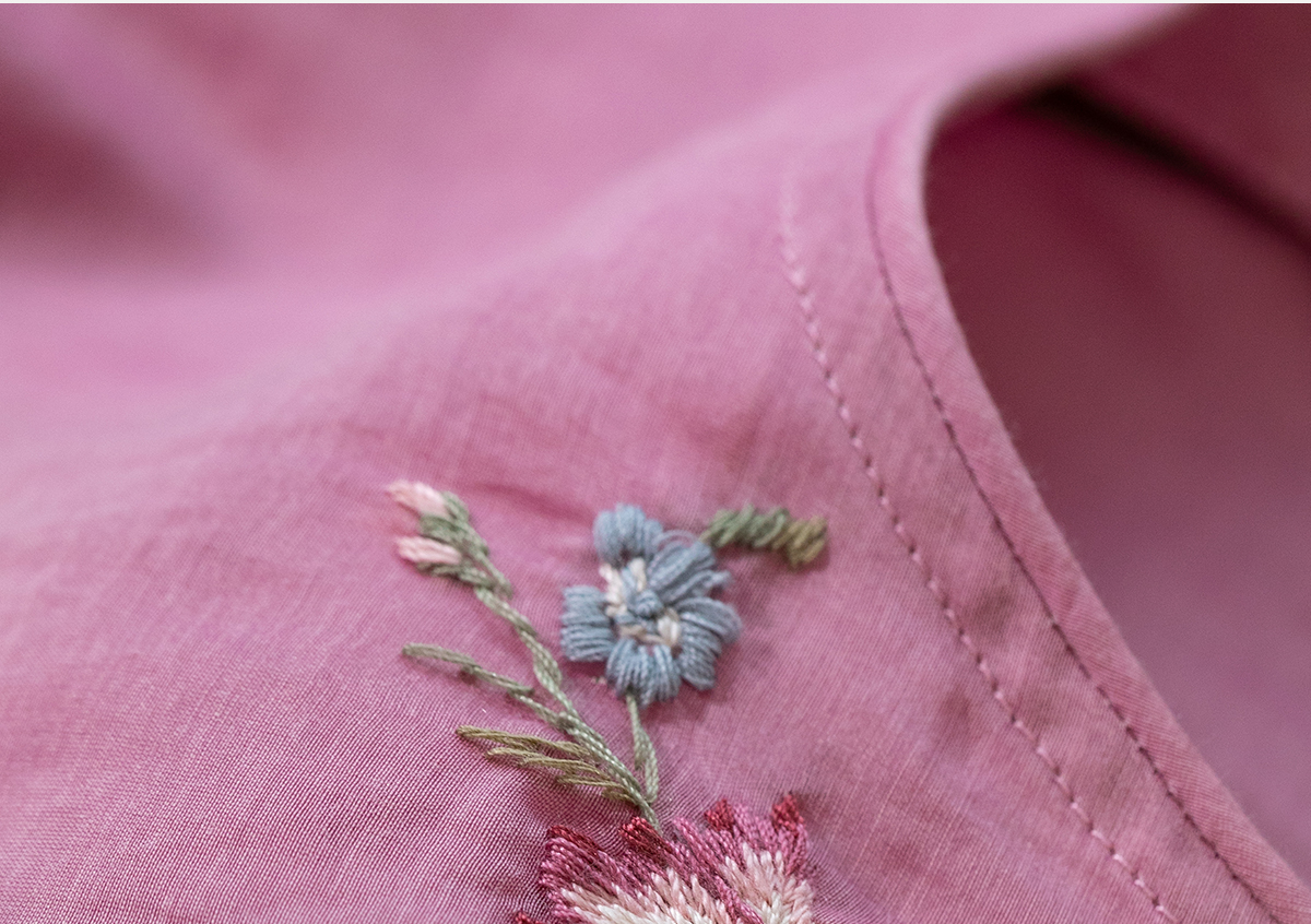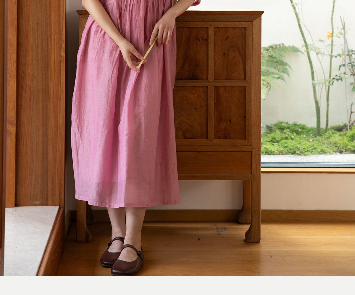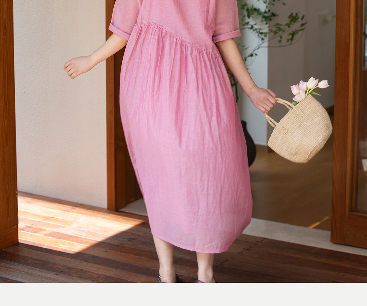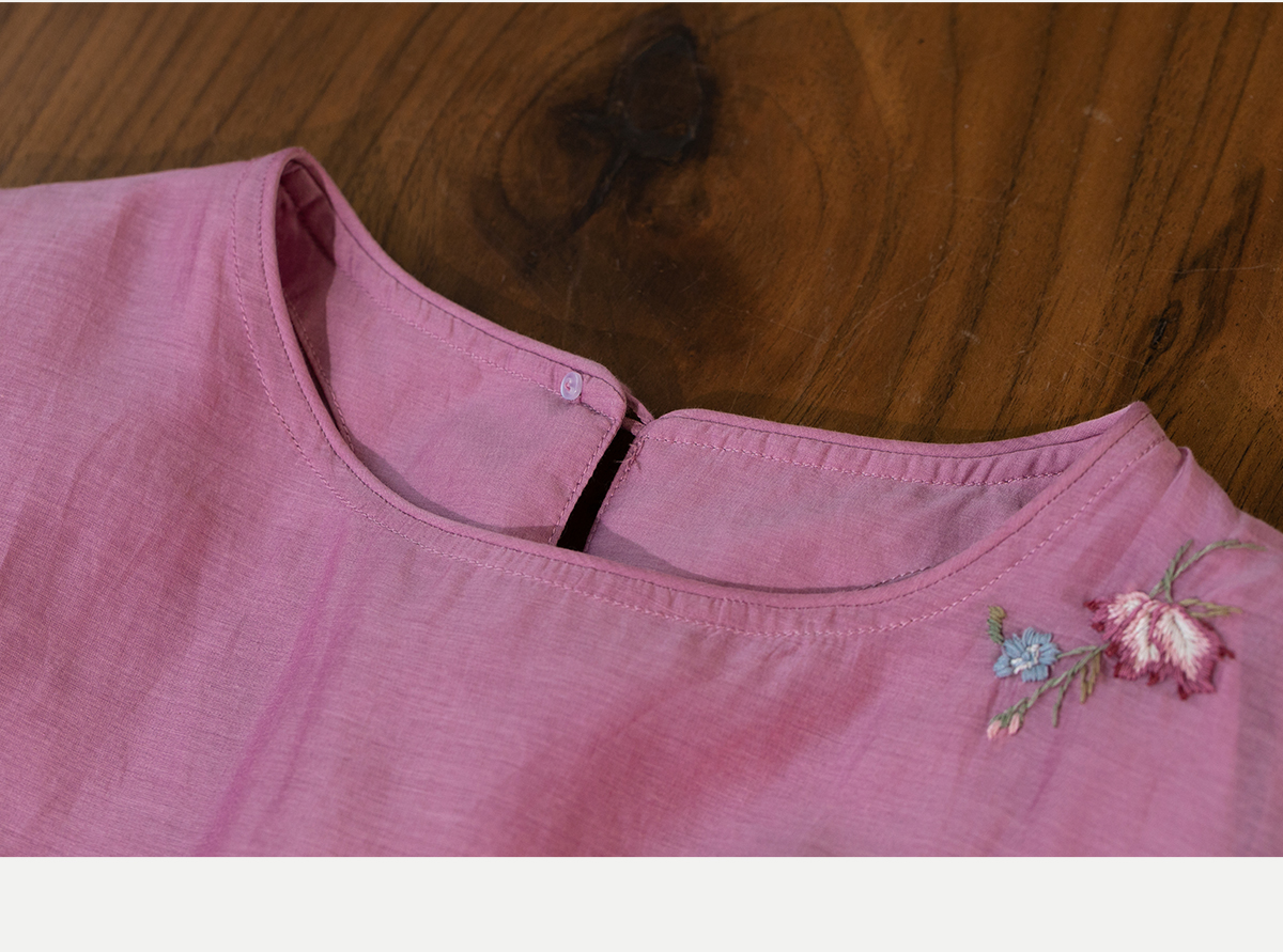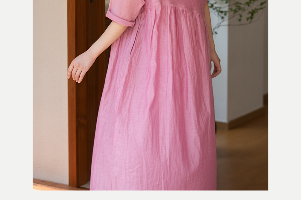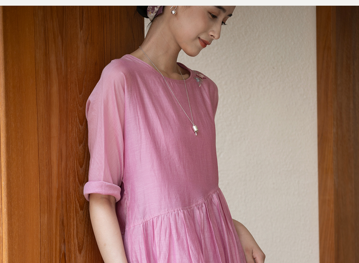 牧衣游原创 匹绣炒色丝绵连衣裙女新款轻薄减龄宽松粉色长裙 漫夏