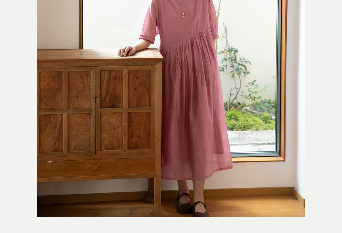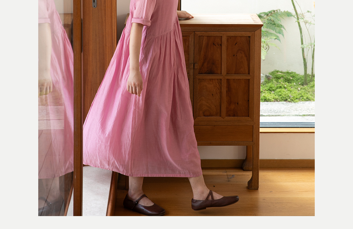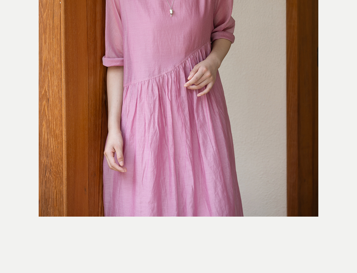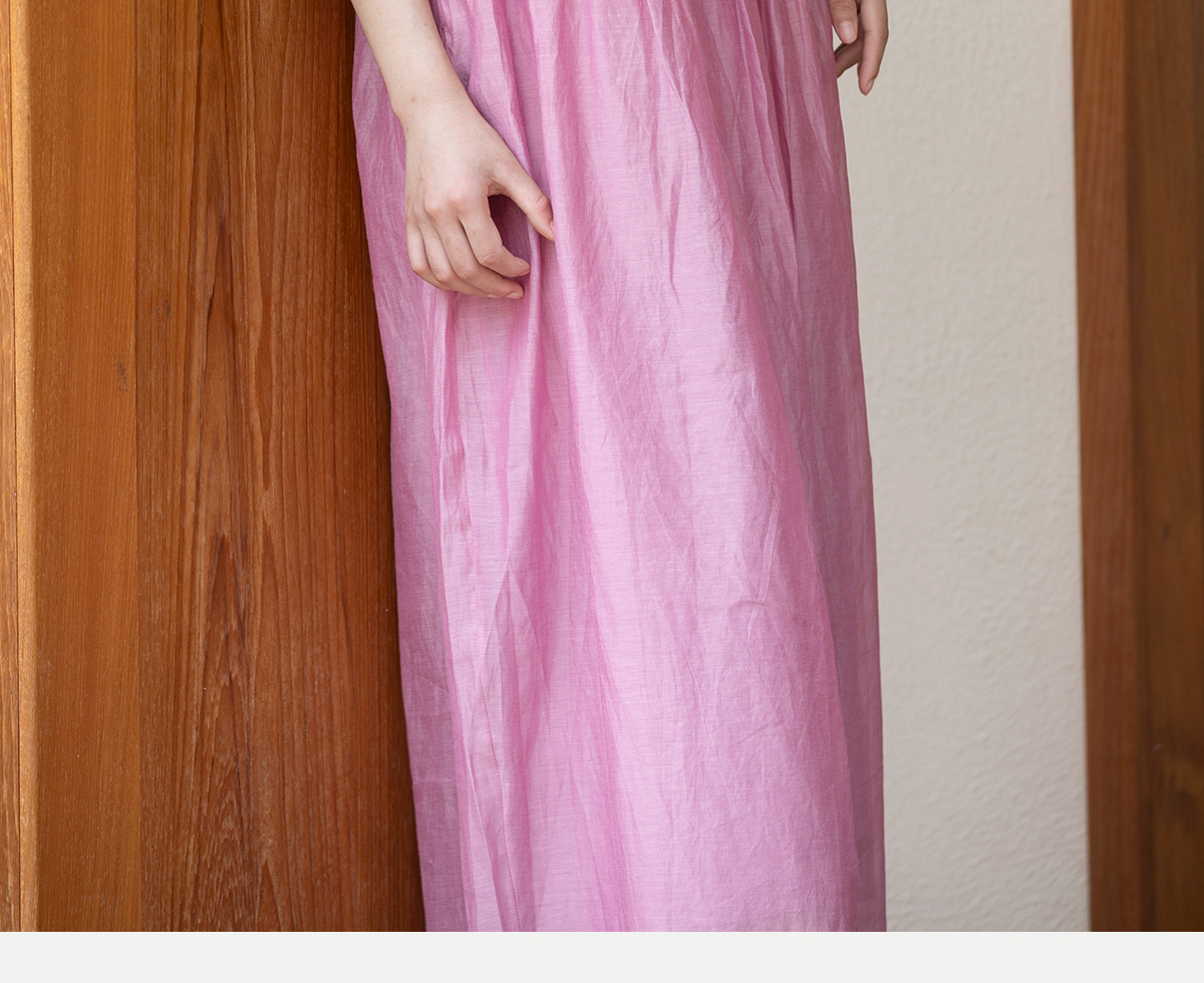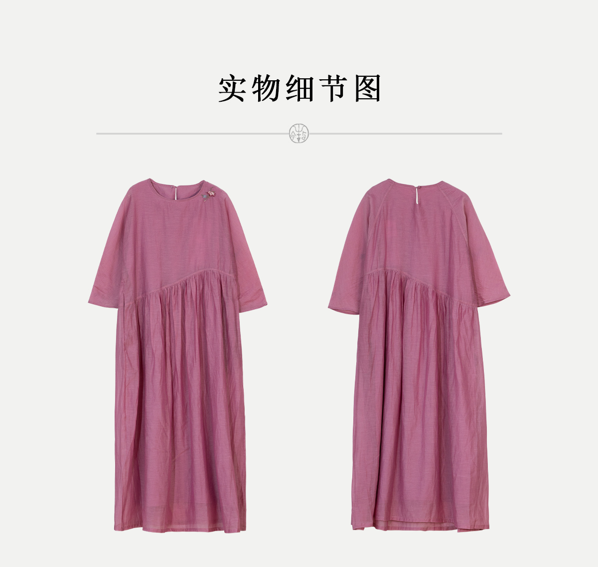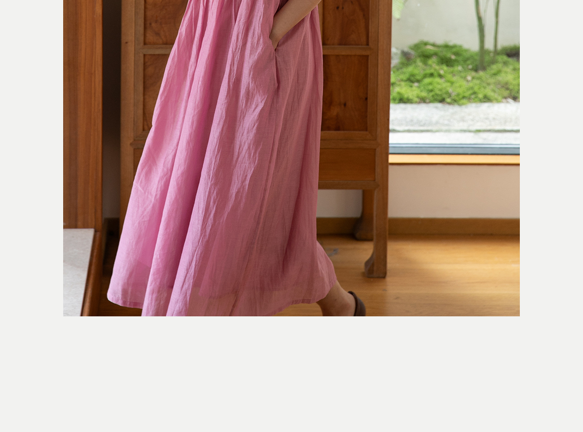 牧衣游原创 匹绣炒色丝绵连衣裙女新款轻薄减龄宽松粉色长裙 漫夏