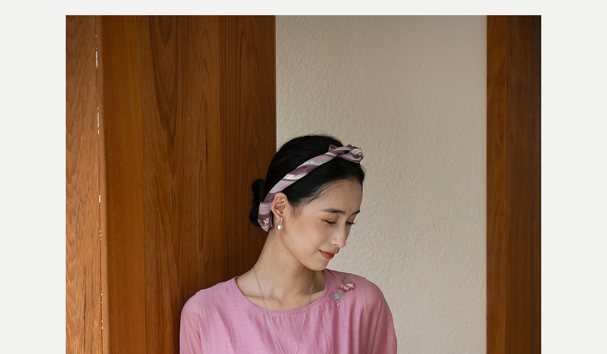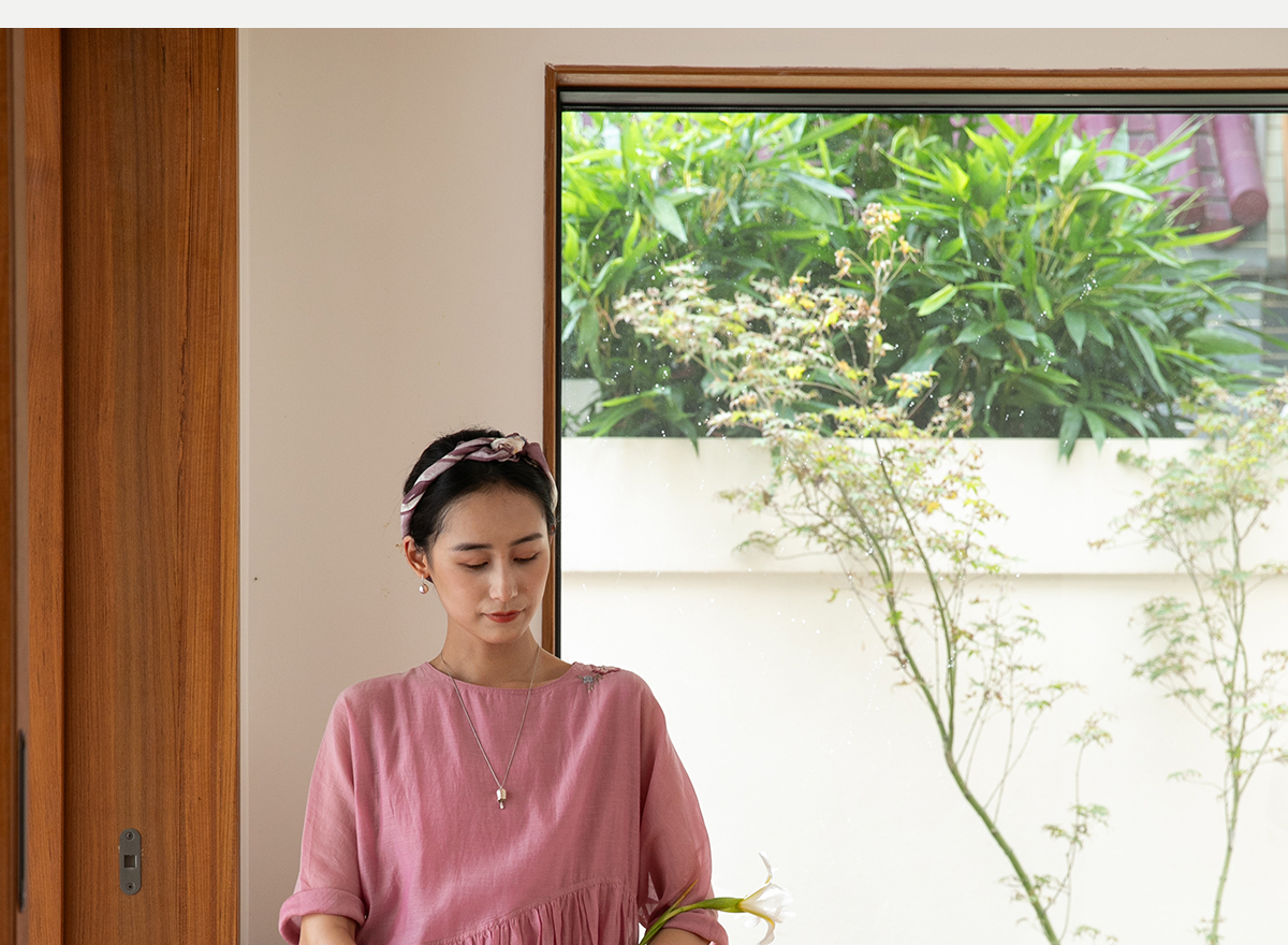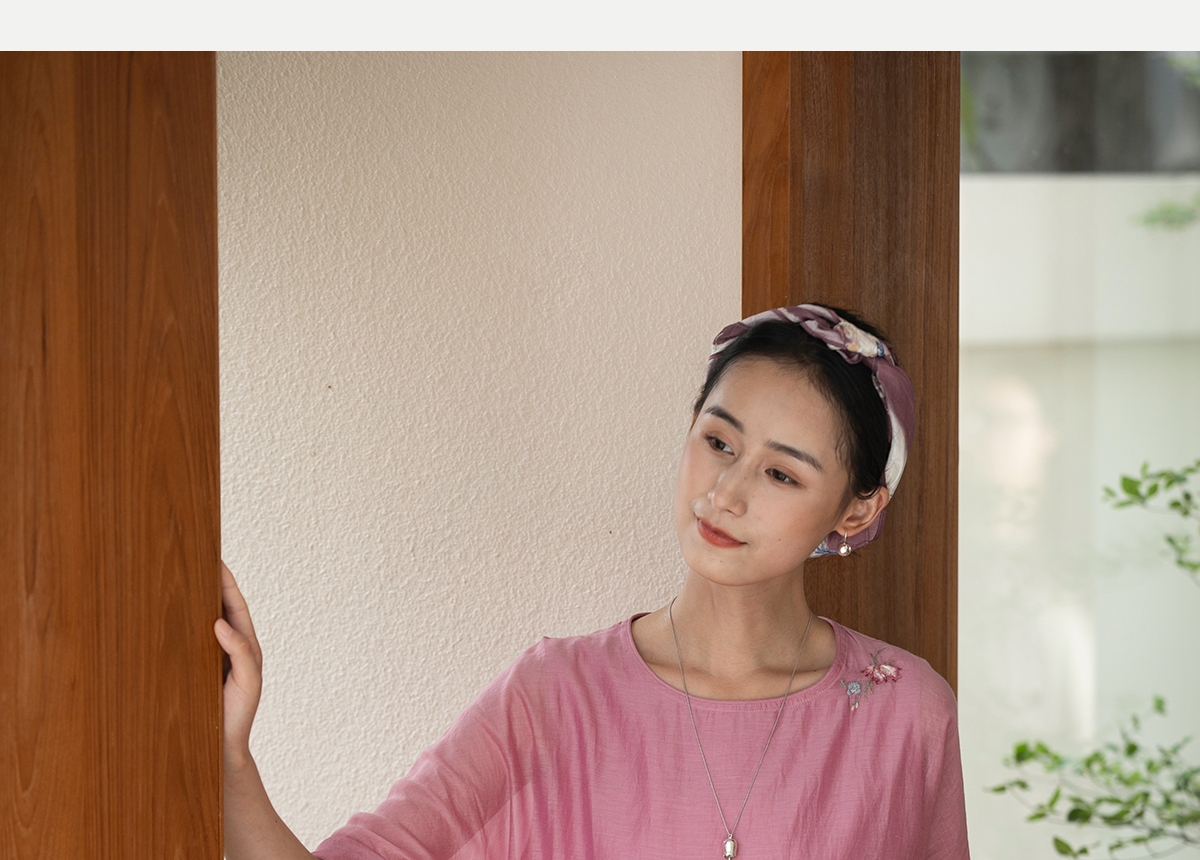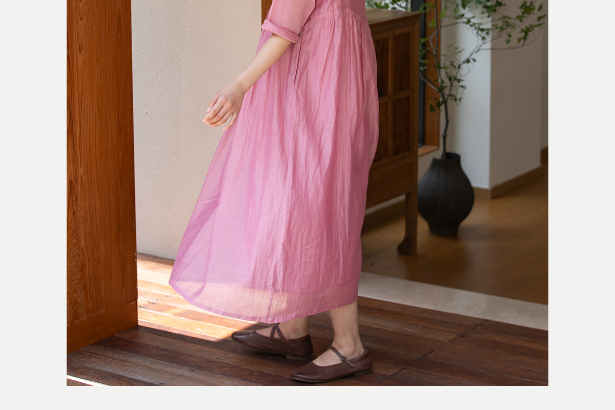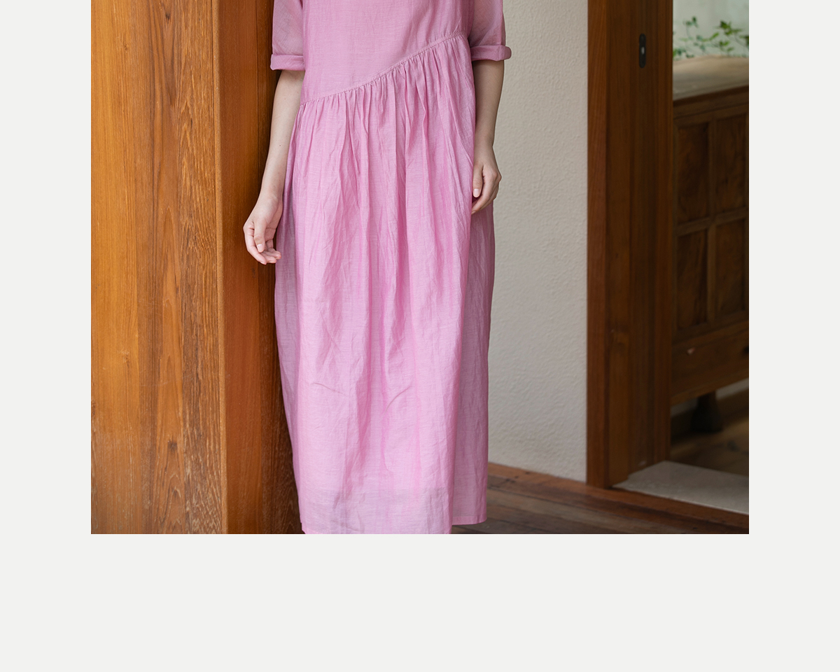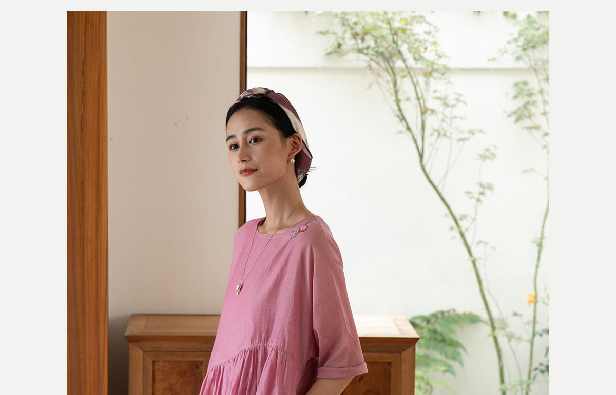 牧衣游原创 匹绣炒色丝绵连衣裙女新款轻薄减龄宽松粉色长裙 漫夏