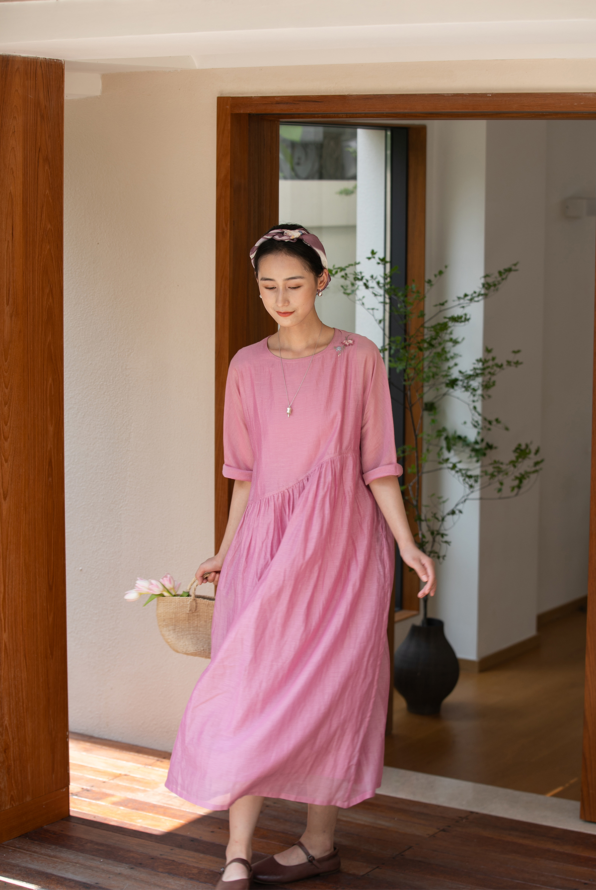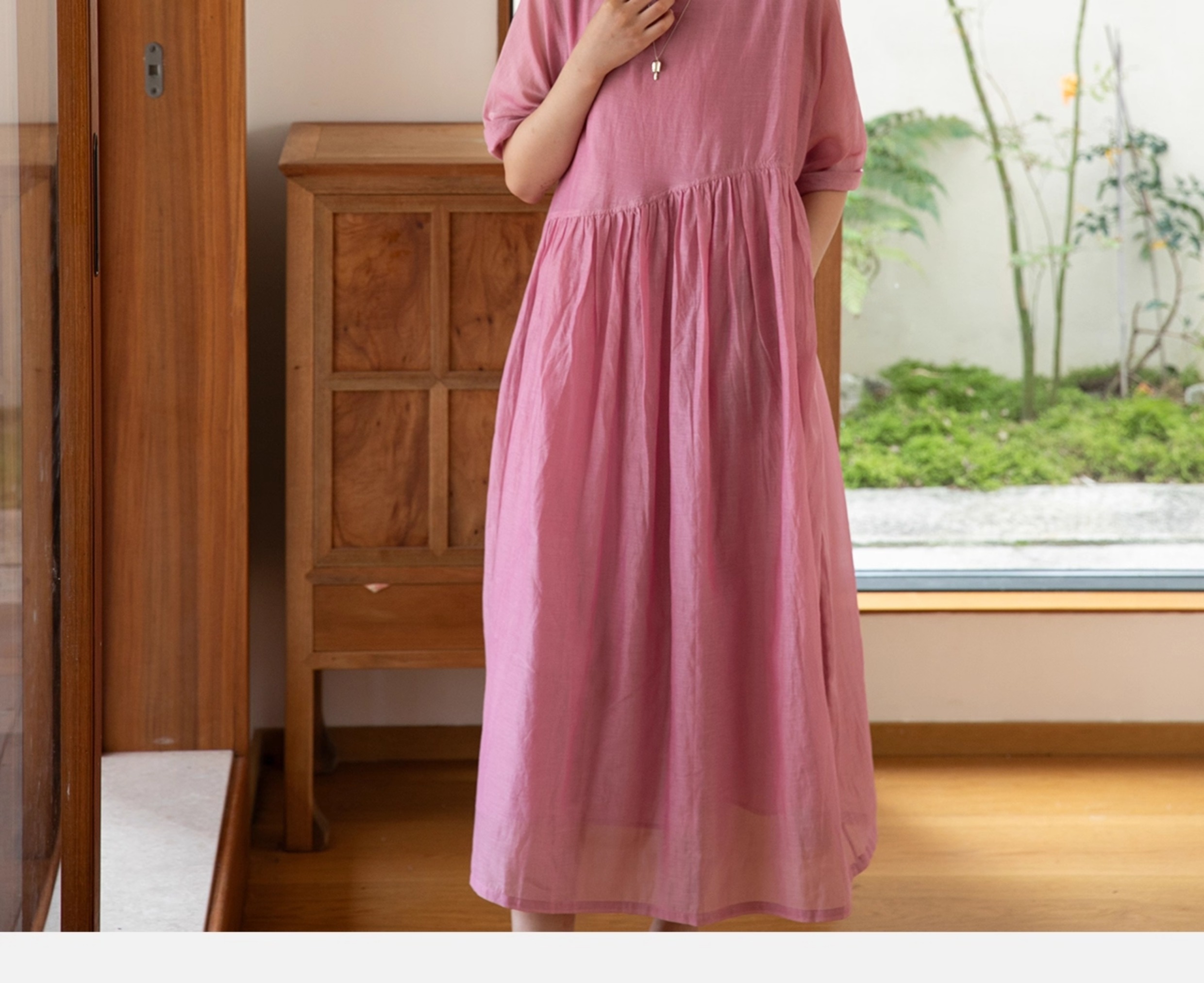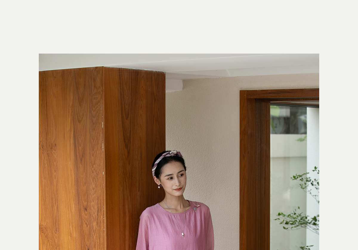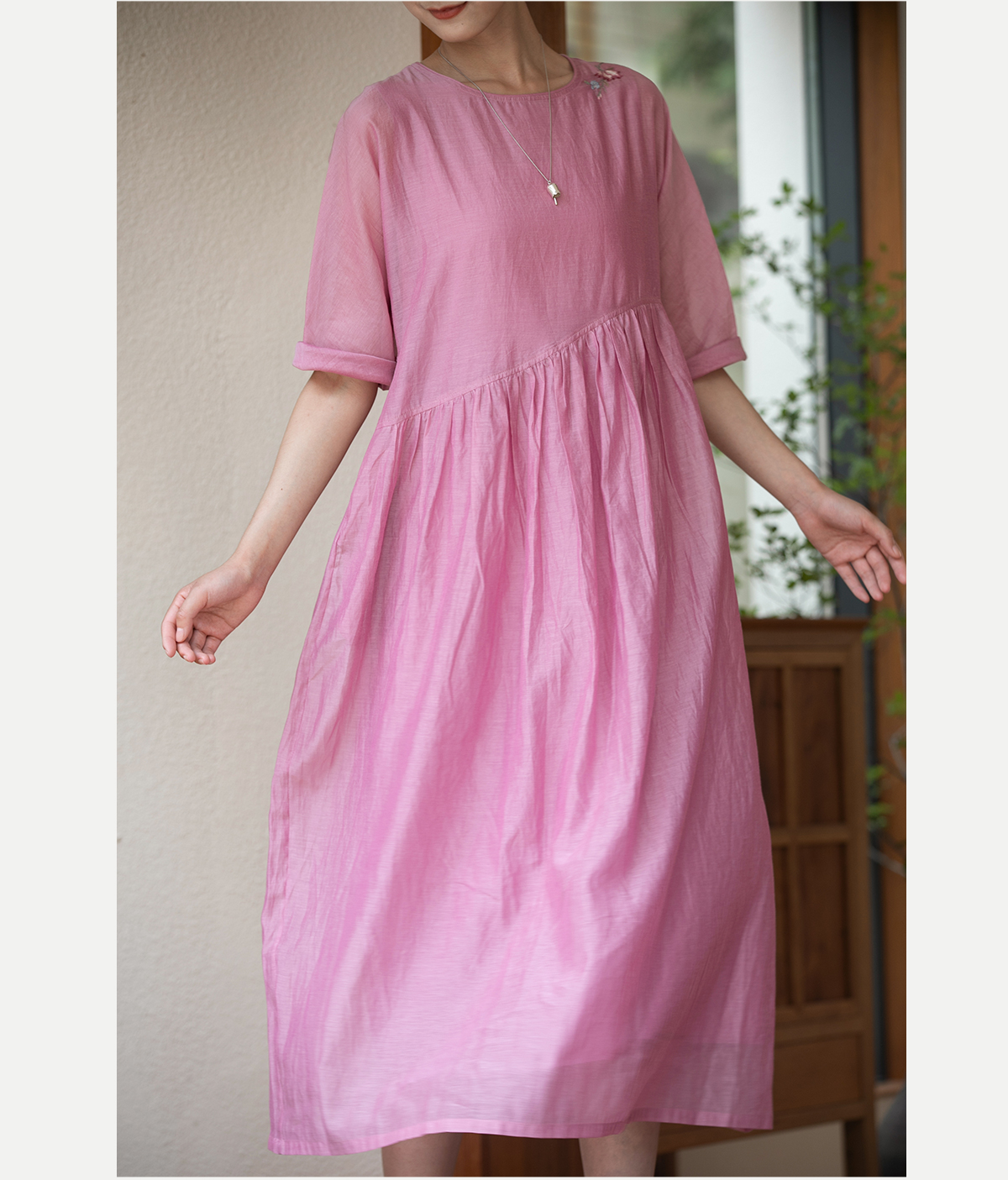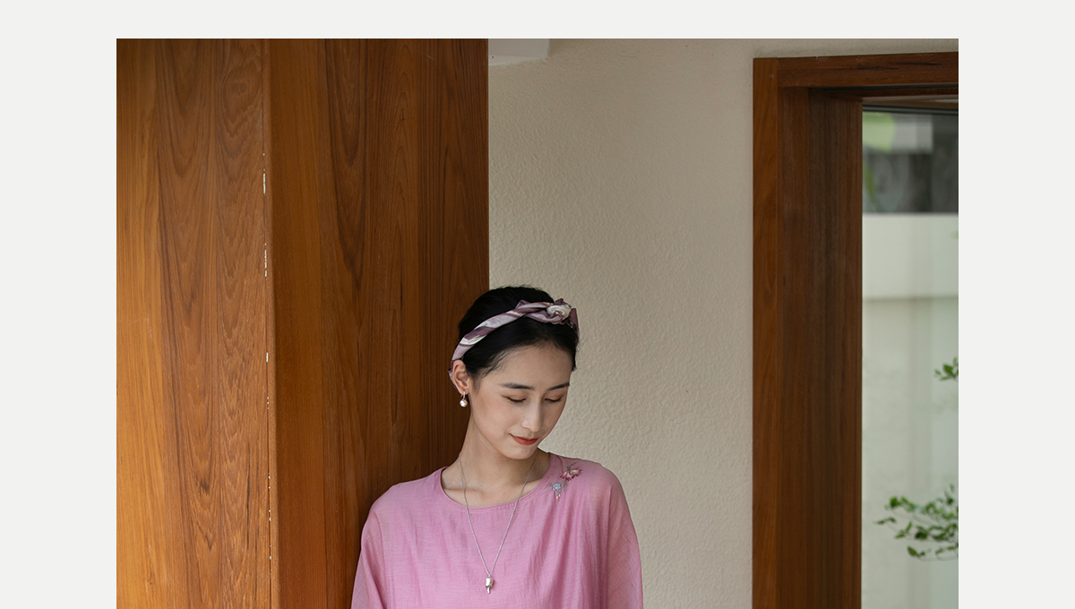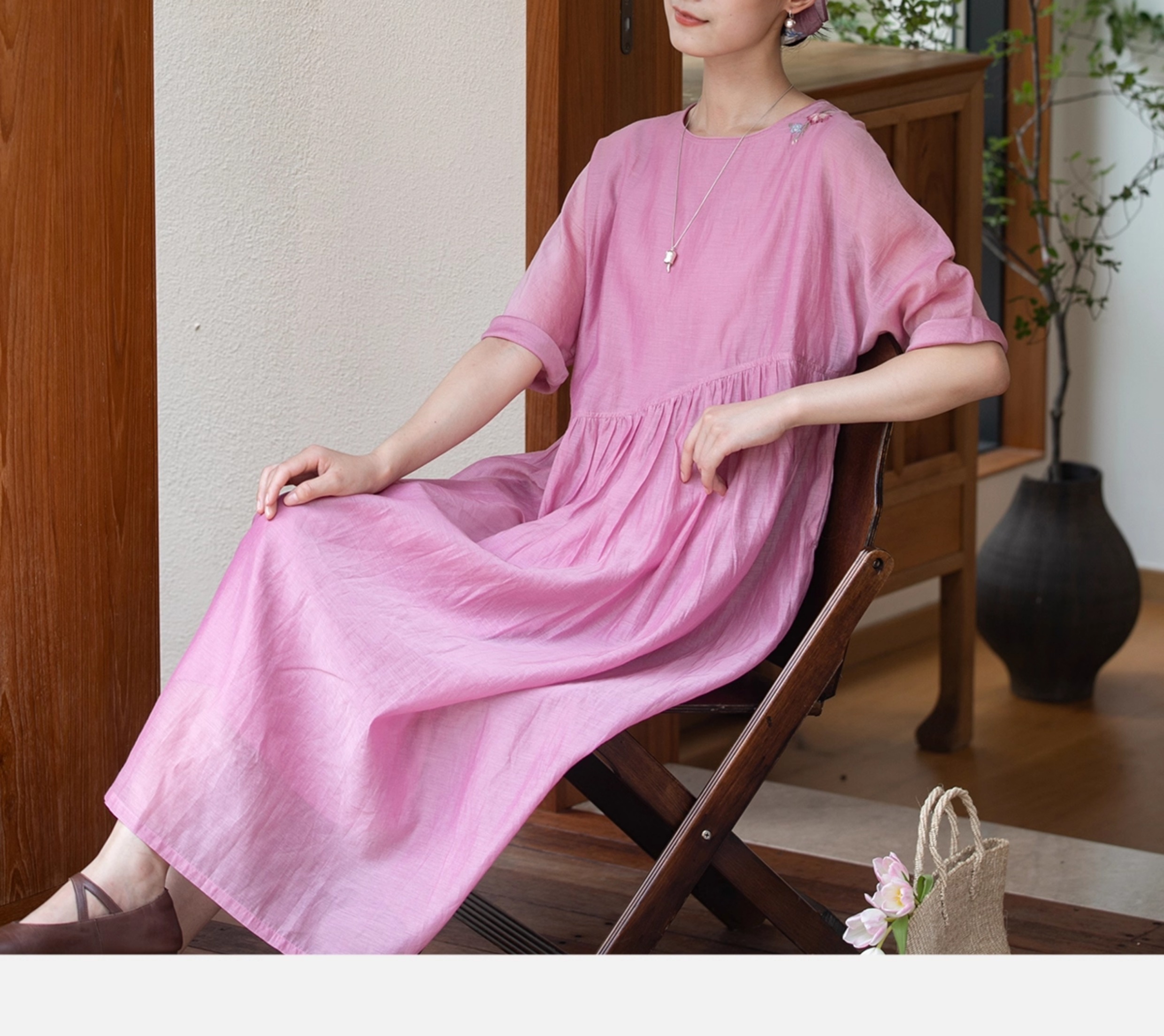 牧衣游原创 匹绣炒色丝绵连衣裙女新款轻薄减龄宽松粉色长裙 漫夏