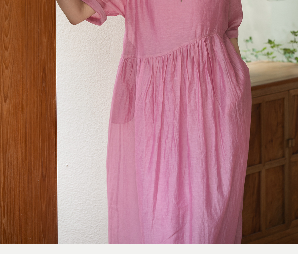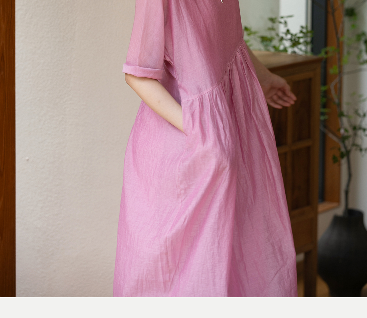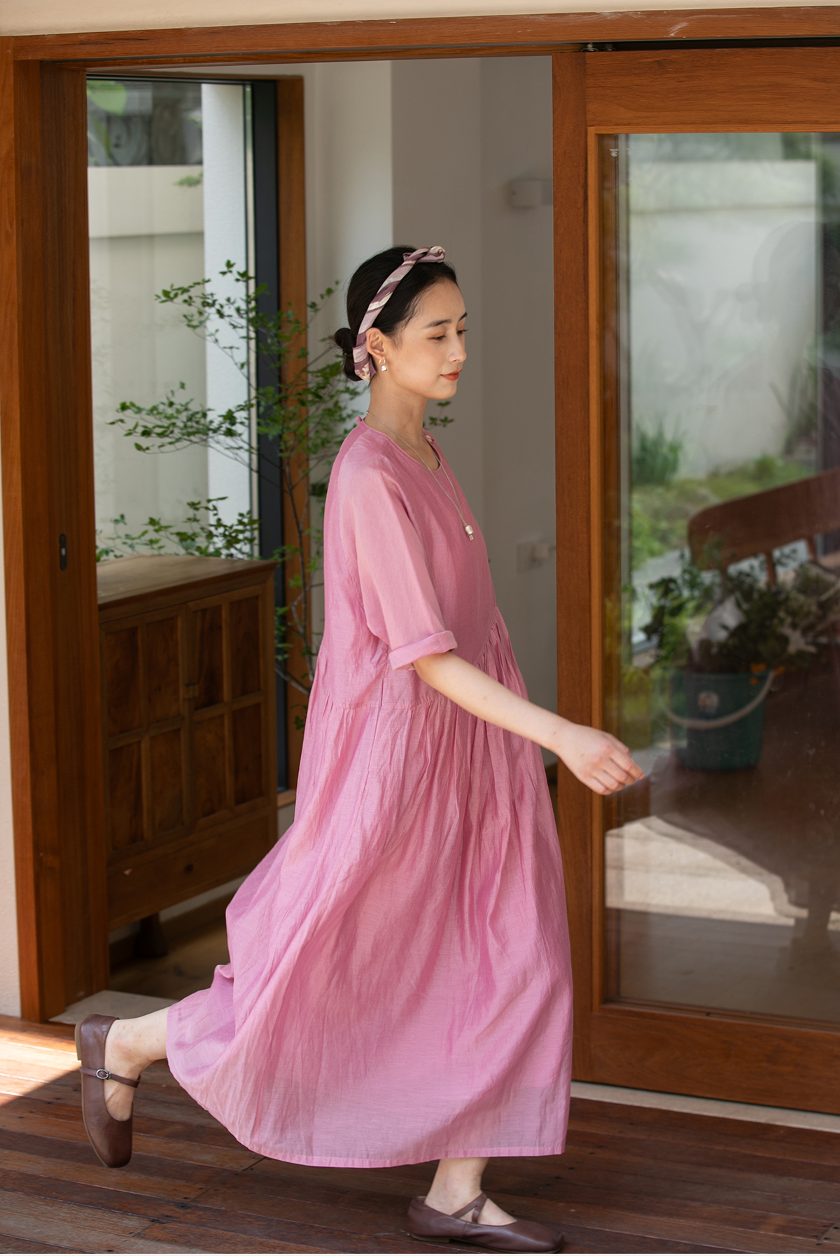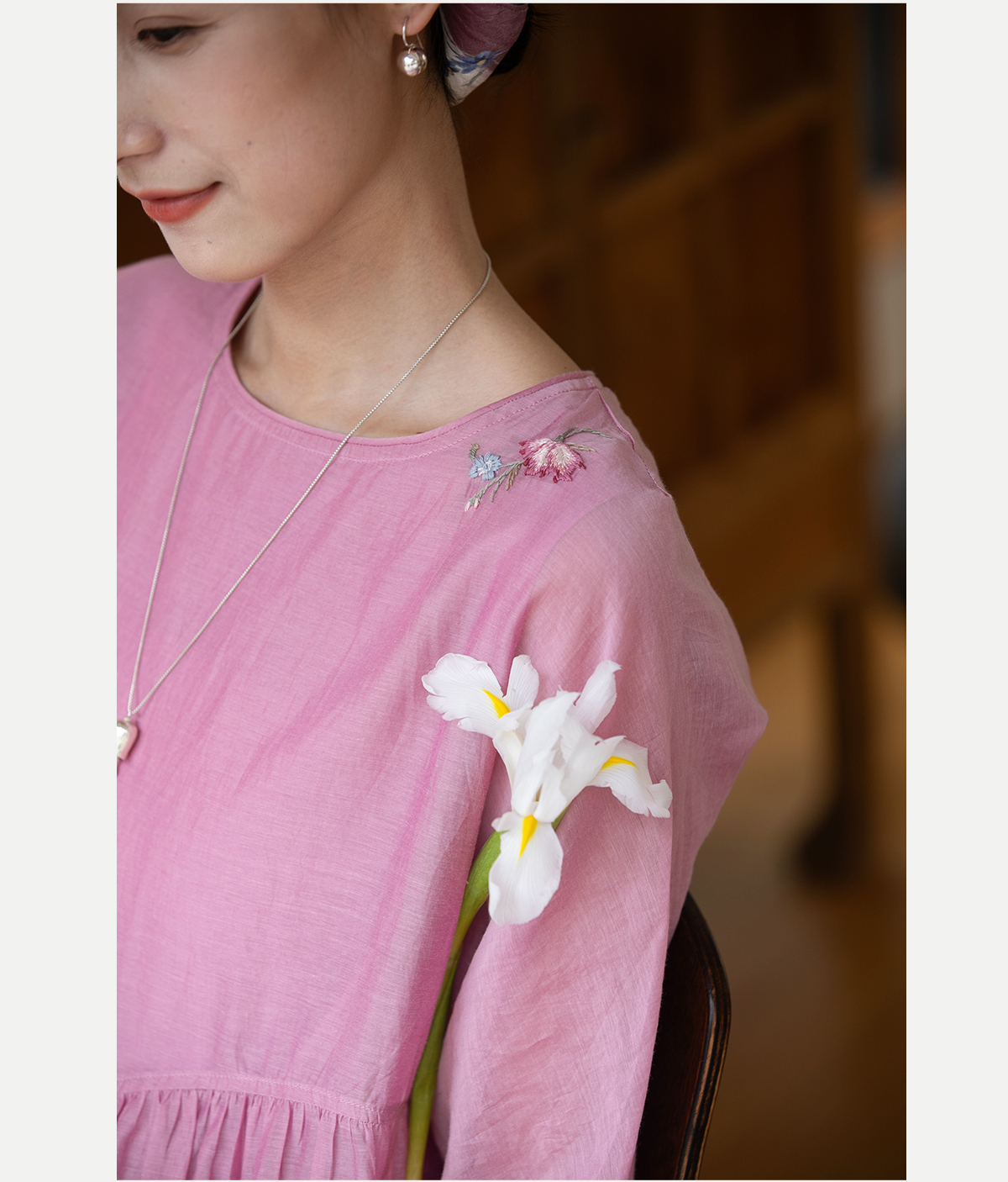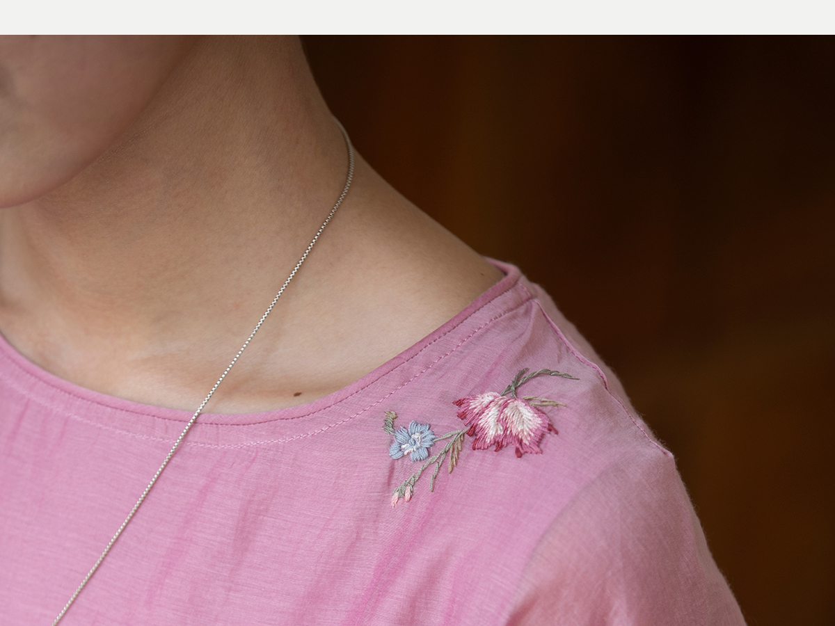 牧衣游原创 匹绣炒色丝绵连衣裙女新款轻薄减龄宽松粉色长裙 漫夏