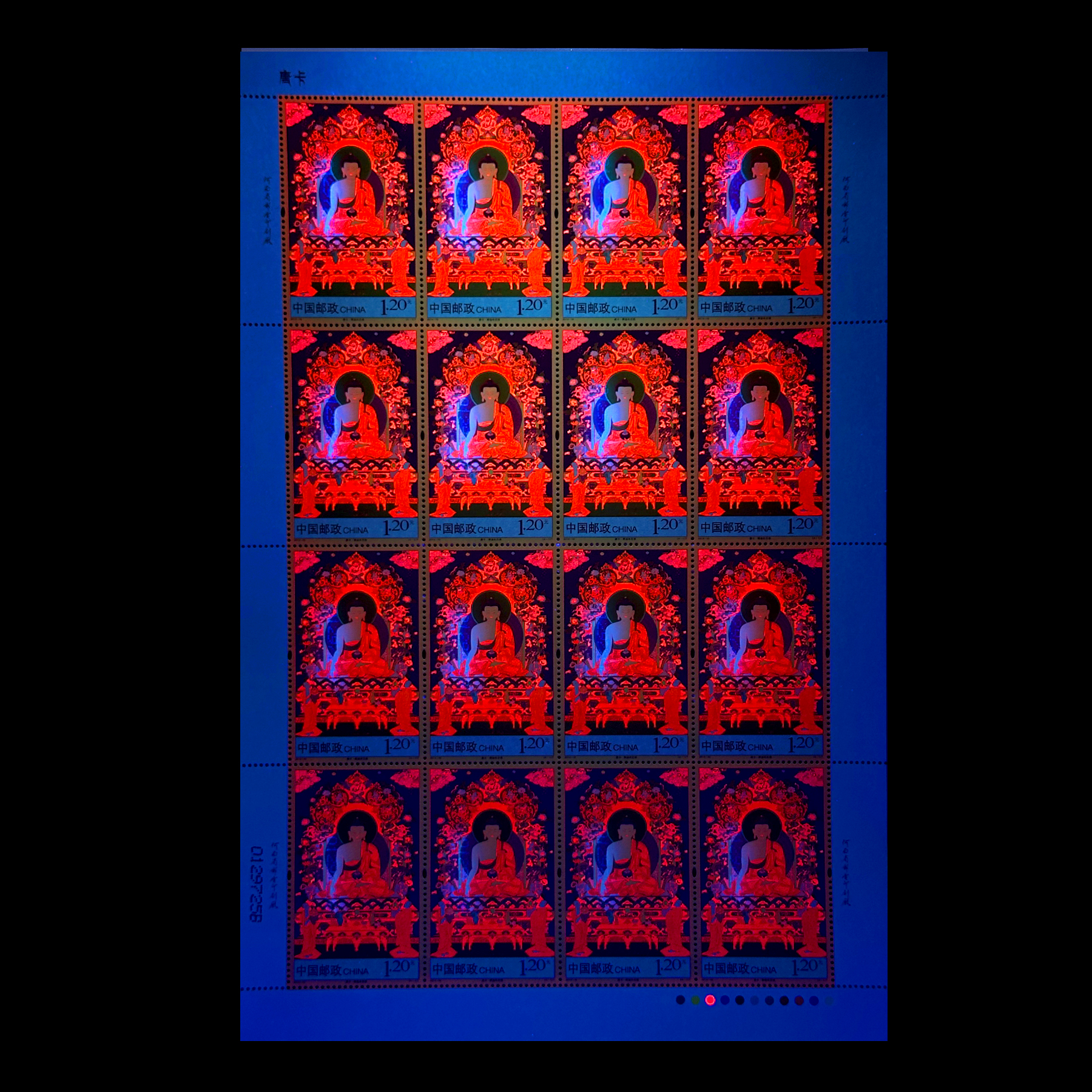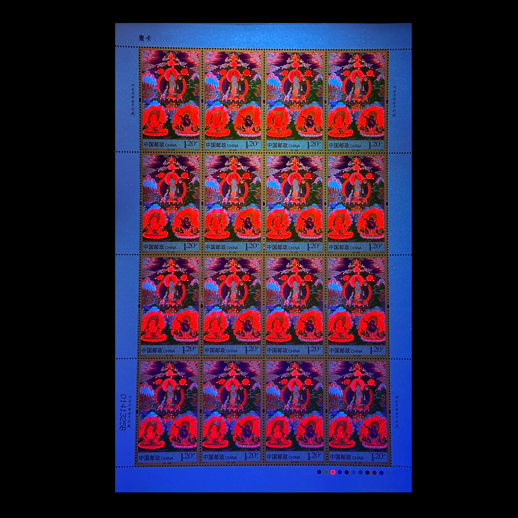 这套邮票,总计运用了 12 种色彩,辅以珠光油墨复合胶印印刷,既保持了藏传佛教鲜明的个性特色,又增添了邮票彩金辉映的奇丽意境和收藏的独特性。