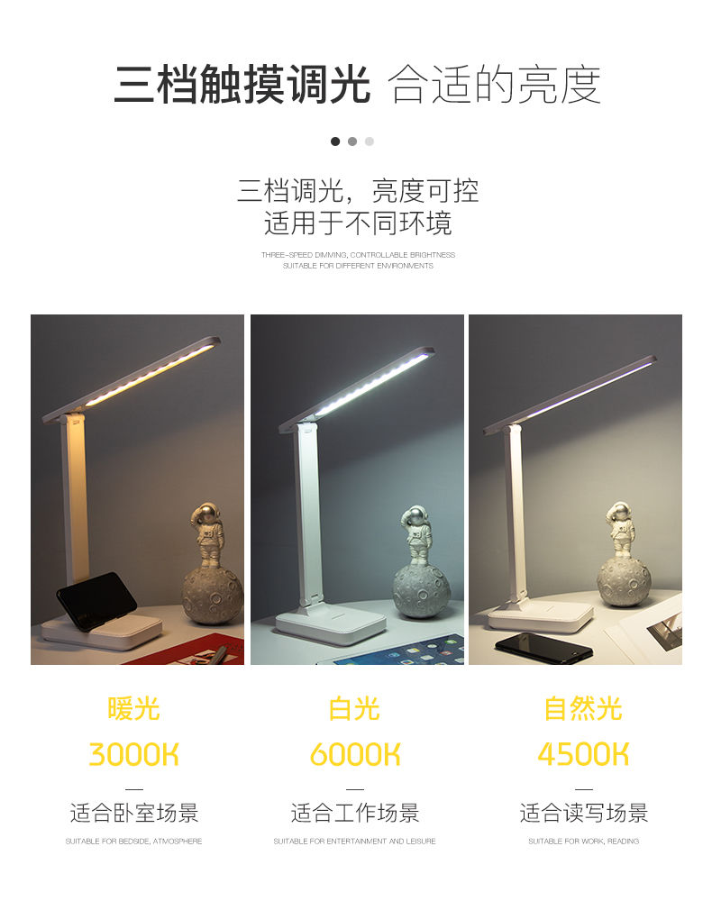 【自然柔光护眼】LED学习阅读台灯 三档触摸调光USB充电生活居家电器学生小夜灯