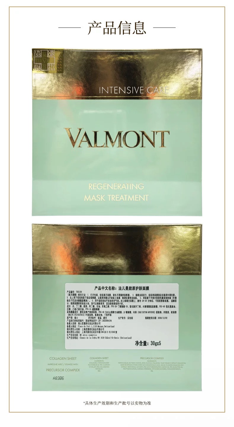 Valmont 胶原修护面膜 5Sets+60ml