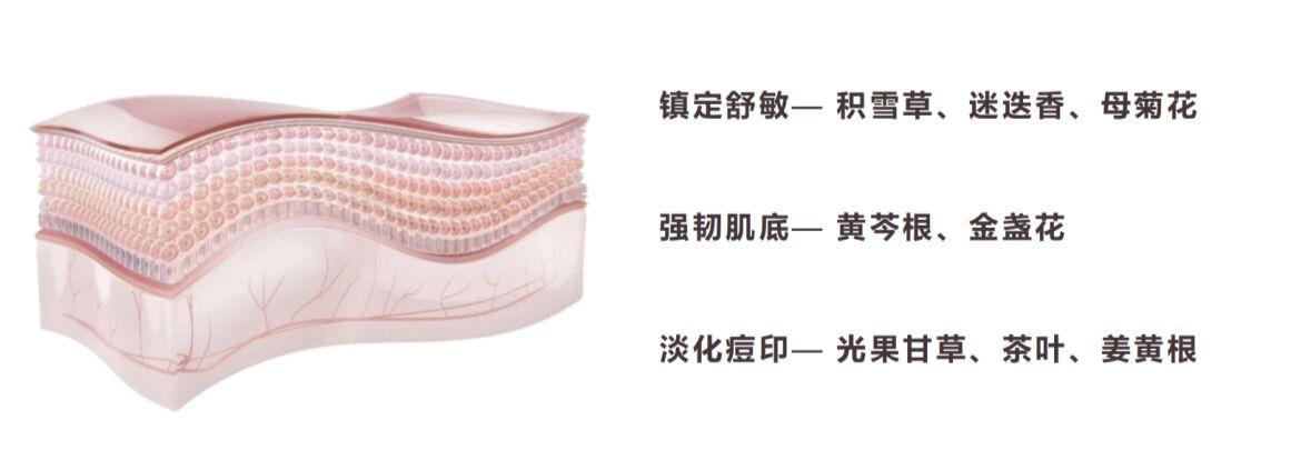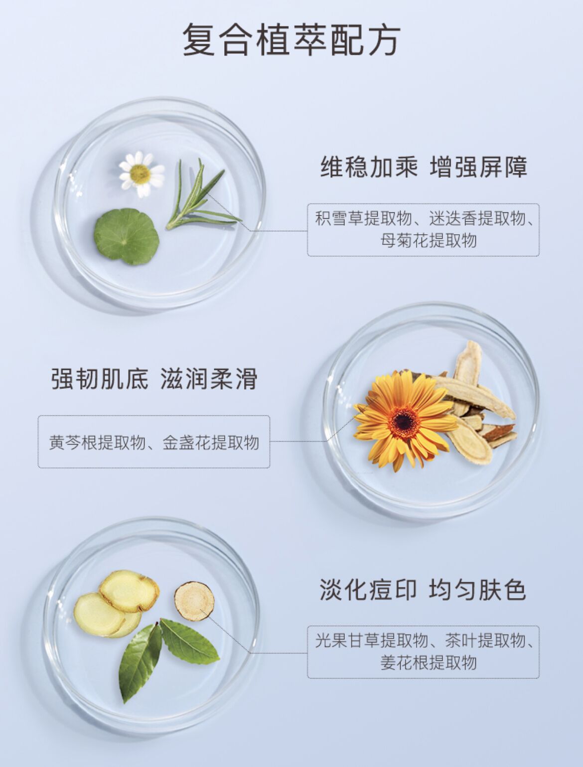 是通过原料优选获取的8种植物的活性成分组成,8种生物活性成分协同增效,可有效抑制刺激产生过程,显著缓解皮肤刺激状态,有助于敏感肌肤祛红止痒,起到强效抗敏作用。还可通过免疫调节作用,有效舒缓刺激和增强皮肤屏障功能,提升抵御外界刺激能力。同时加速肌肤新陈代谢,整体提亮肤色,淡化色素沉淀型痘印。