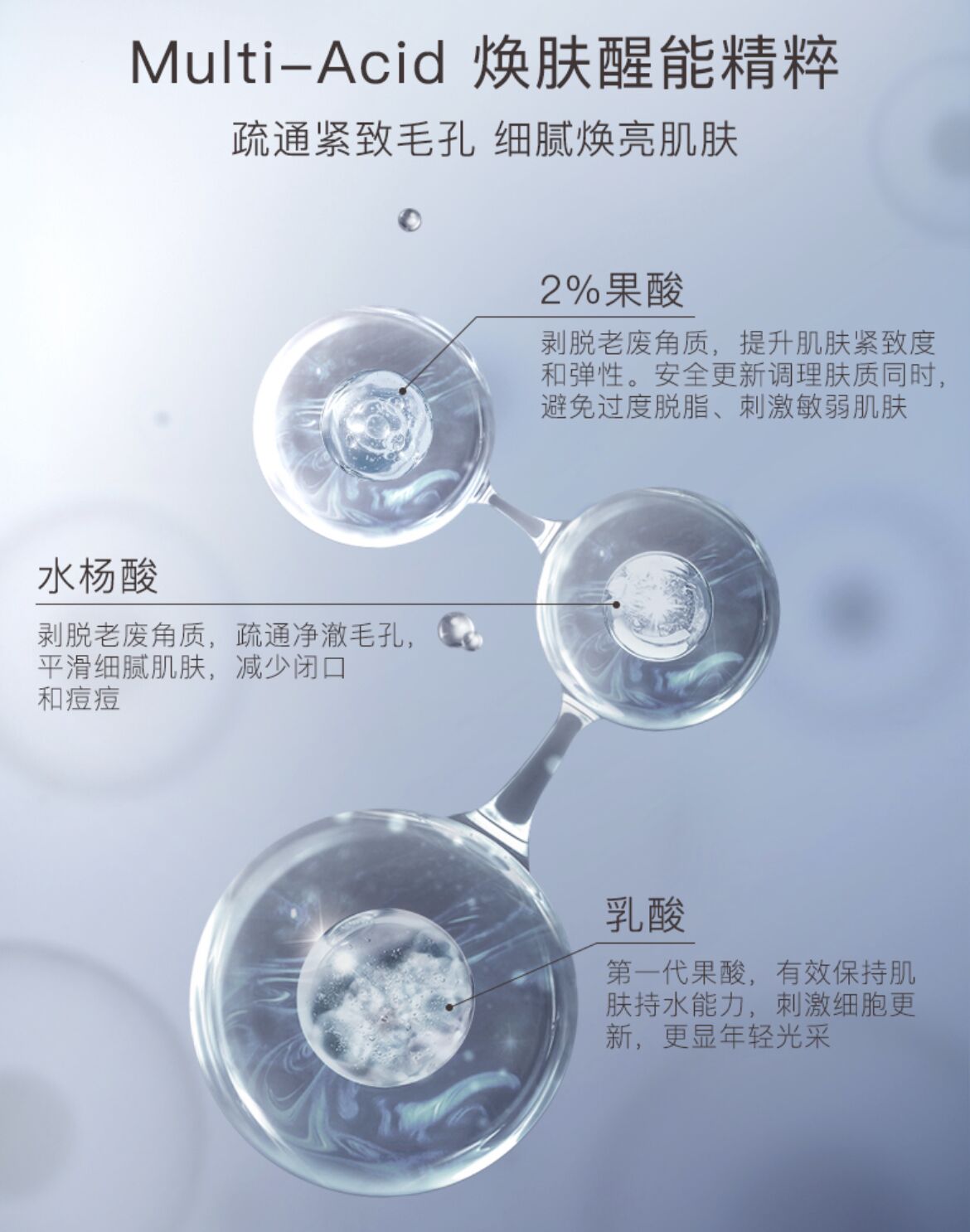 剥脱老废角质,促进新陈代谢,温和持续疏通净澈毛孔,减少毛孔堵塞,平滑细腻肌肤,减少闭口和痘痘。