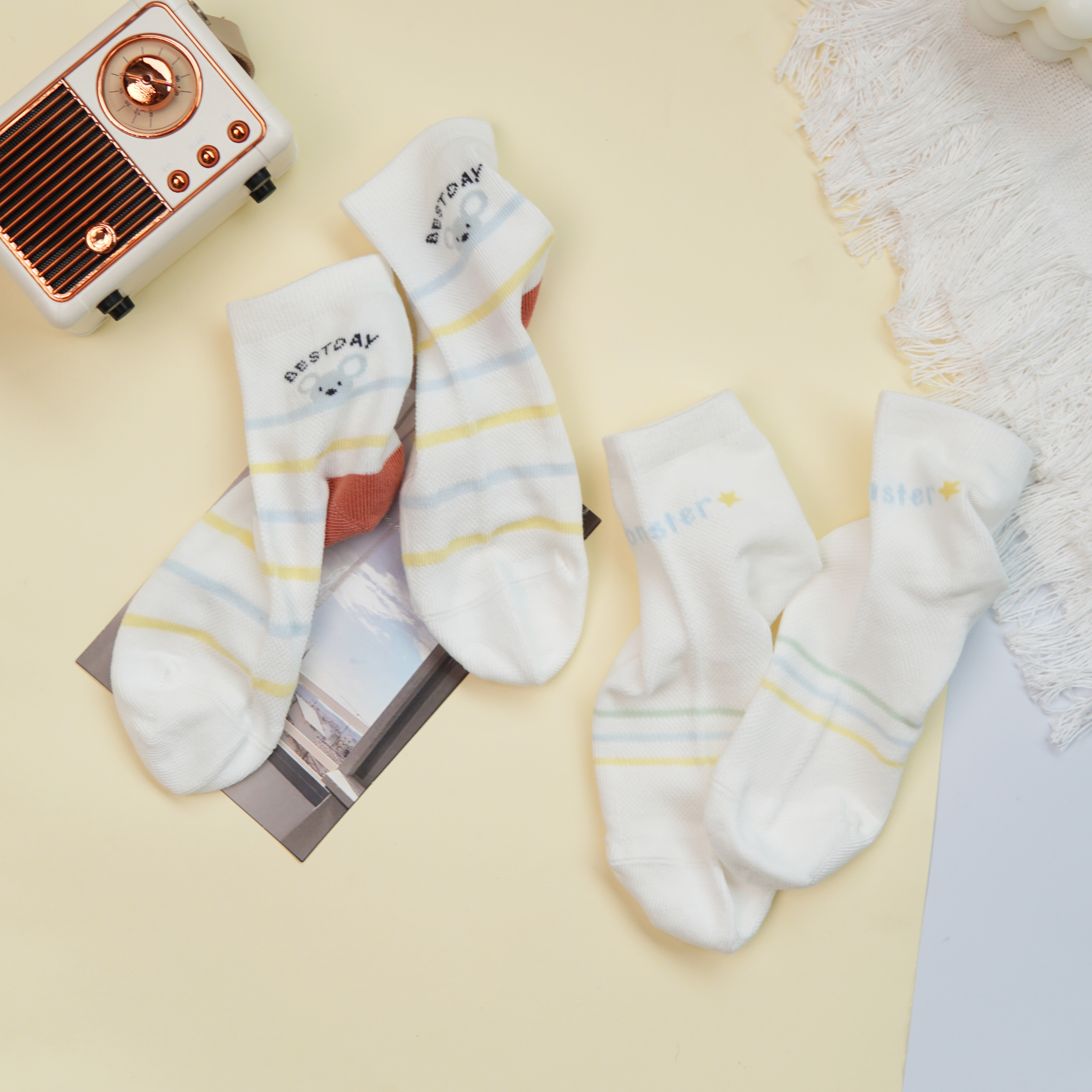 【6双6折】【26-32码】中筒夏季薄款袜子网面条纹童袜男宝棉袜女宝袜子【2双装】【2613205】