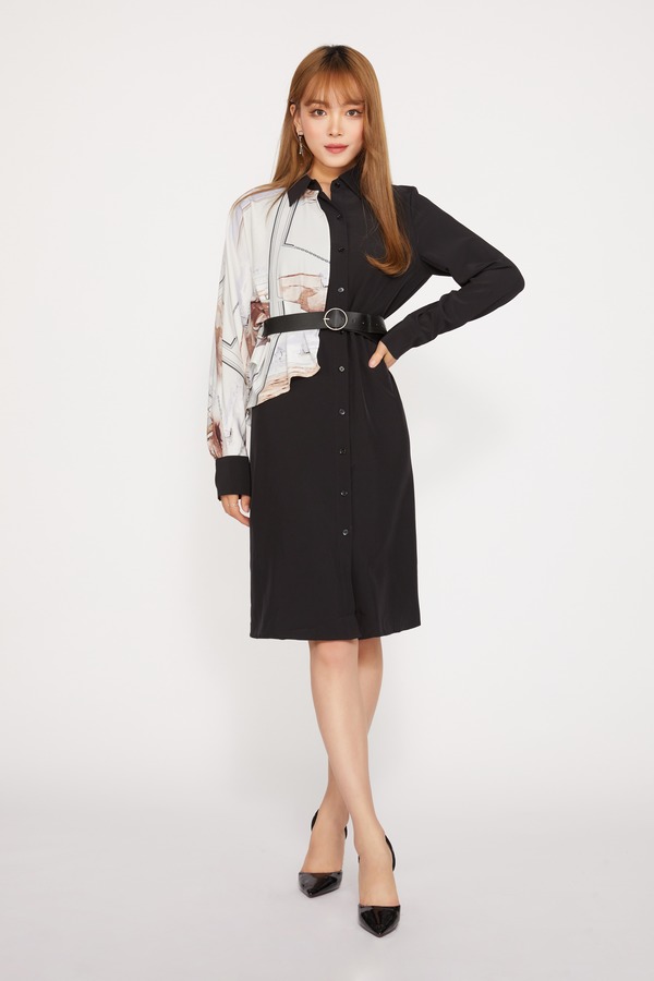 LNNNS 不对称设计感撞色拼接连衣裙 9984