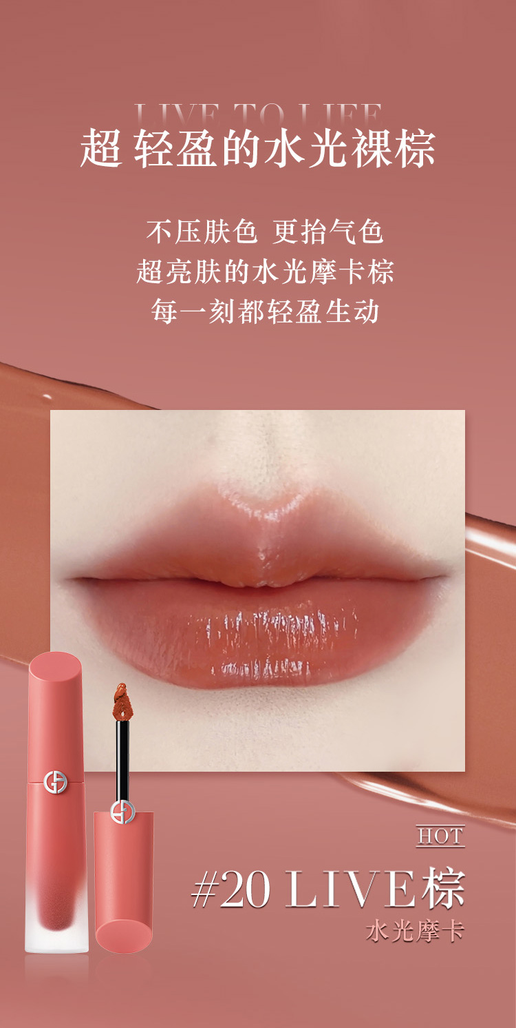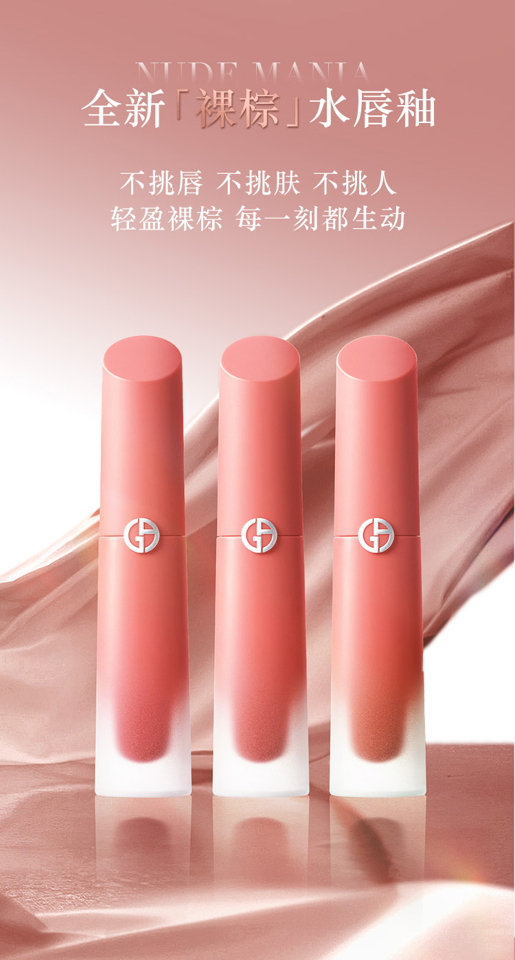 阿玛尼 裸棕水唇釉 显白保湿滋润口红 4mL