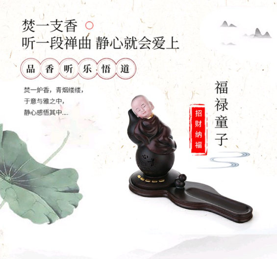 葫芦古典音乐机 小沙弥小葫芦香插古典音乐播放机蓝牙音乐机