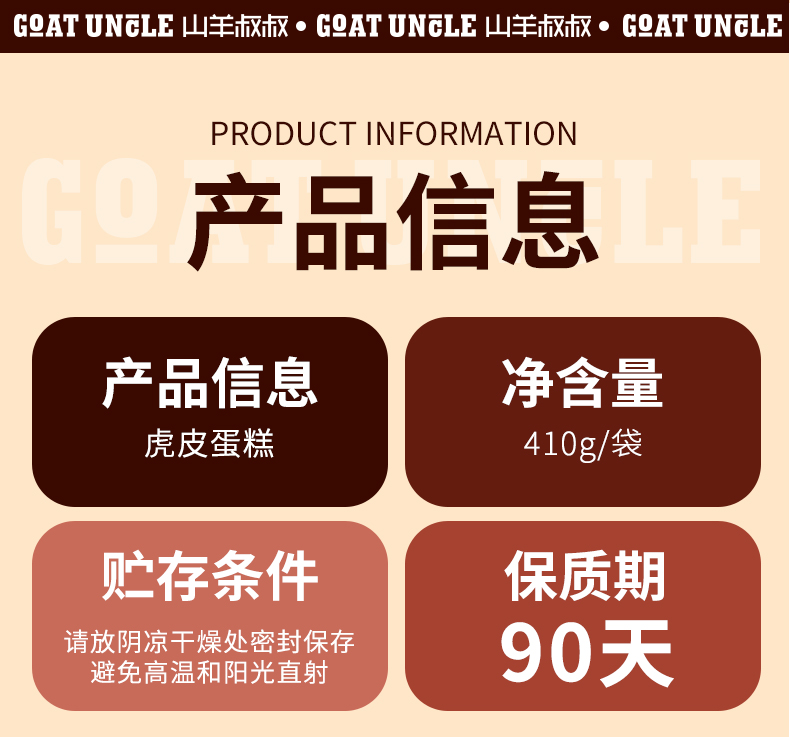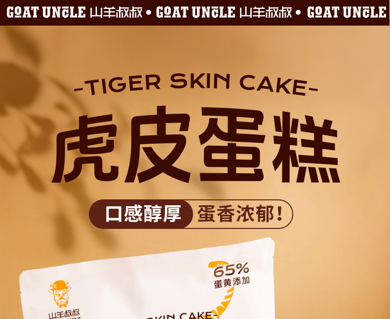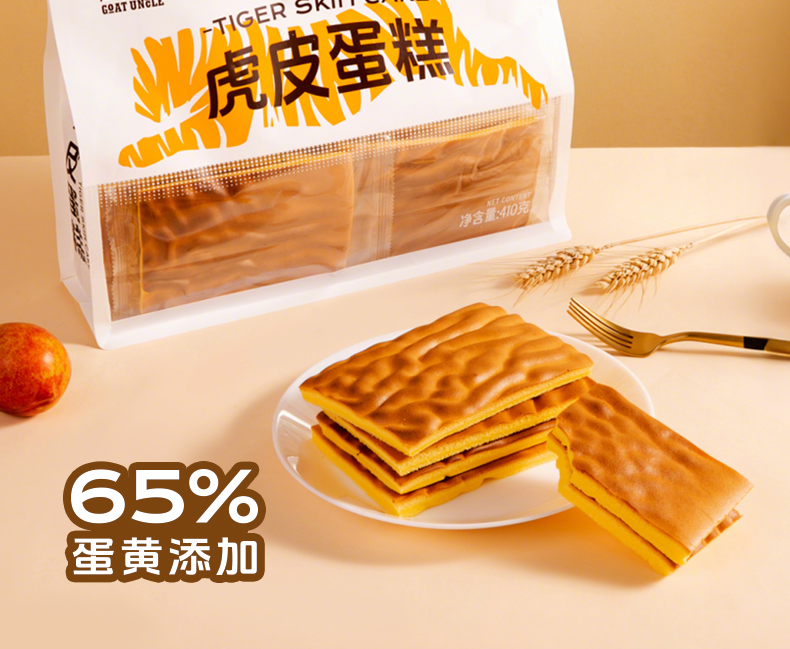 山羊叔叔虎皮蛋糕 410g*2袋 (1袋约10小包)层层叠叠 65% 全蛋黄含量,蛋香浓郁,口感醇厚,制作过程不加一滴水,独立包装
