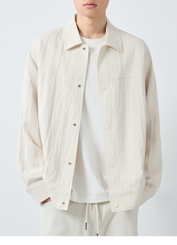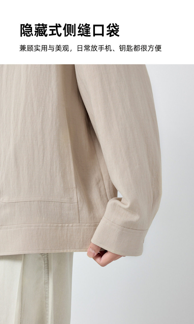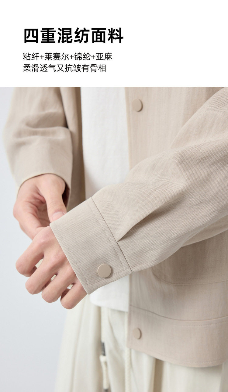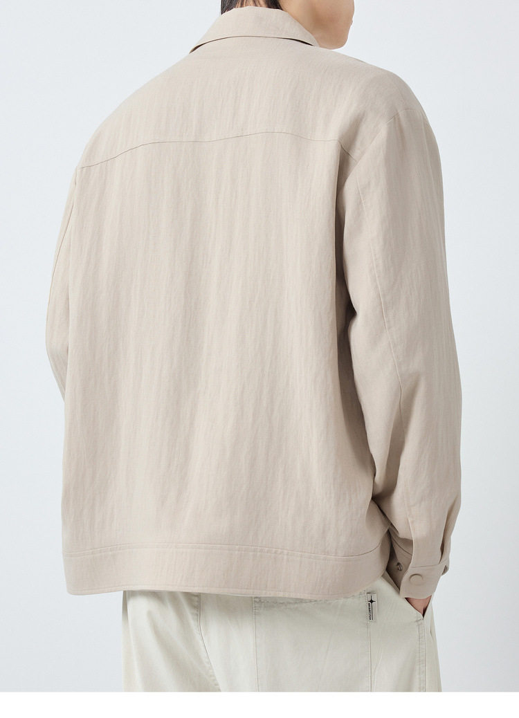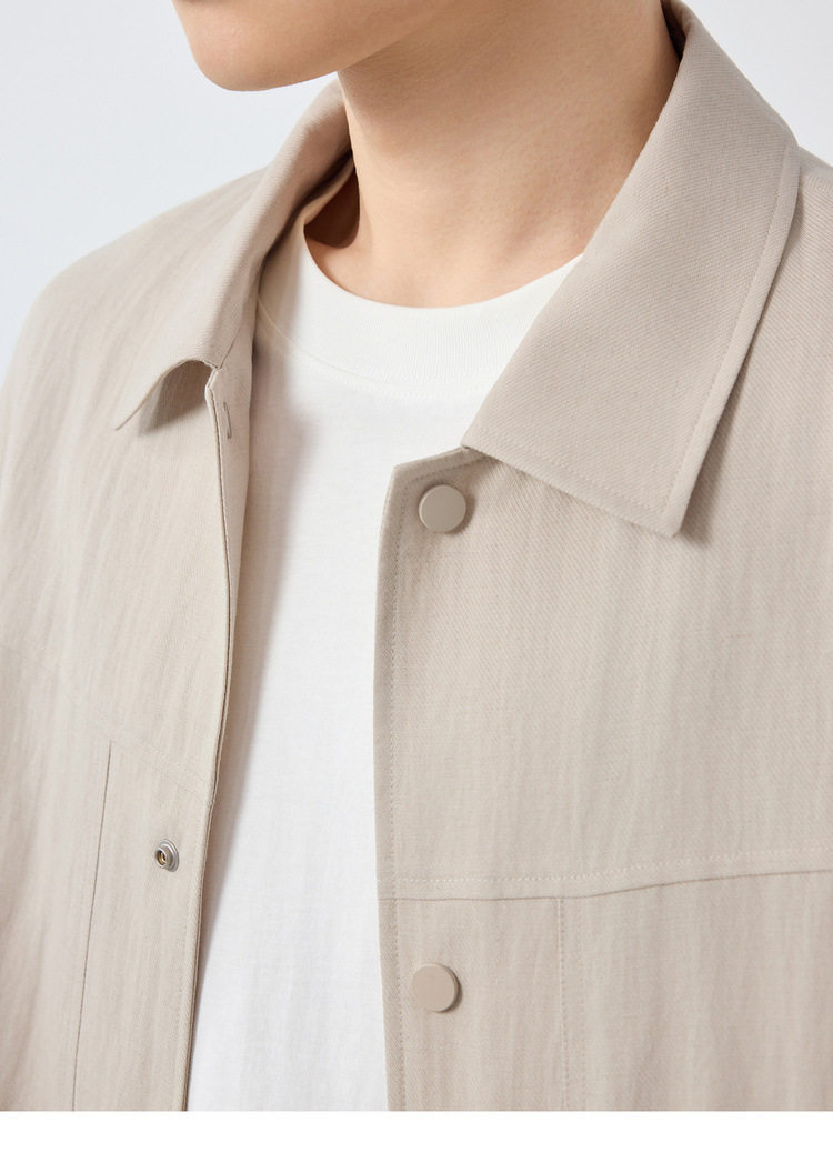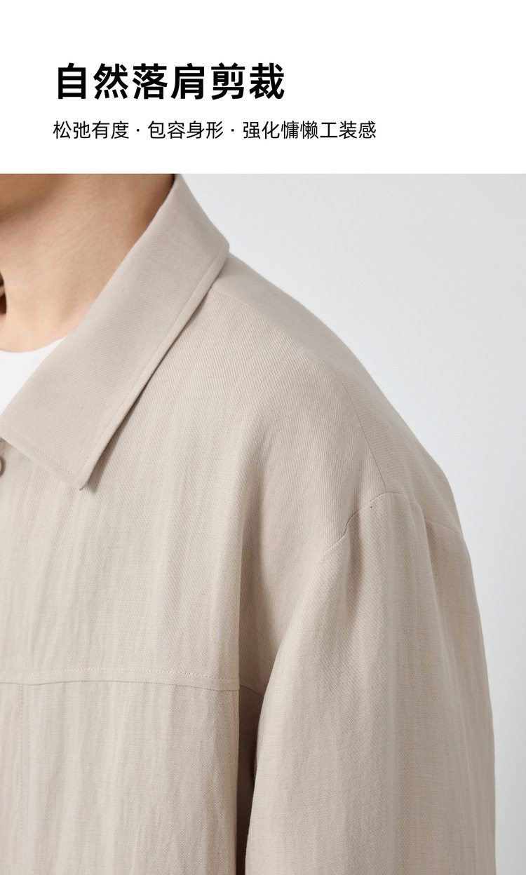 墨麦客男装美式休闲微肌理外套男天丝亚麻混纺翻领男士夹克81611.