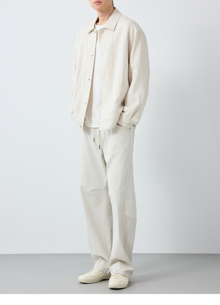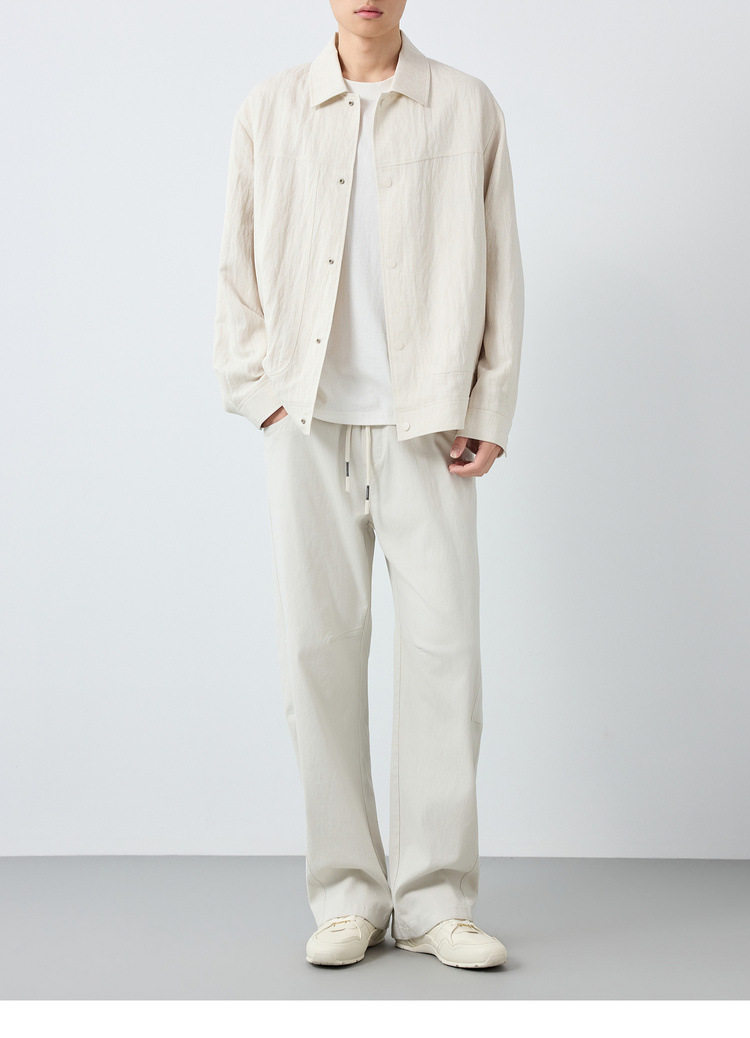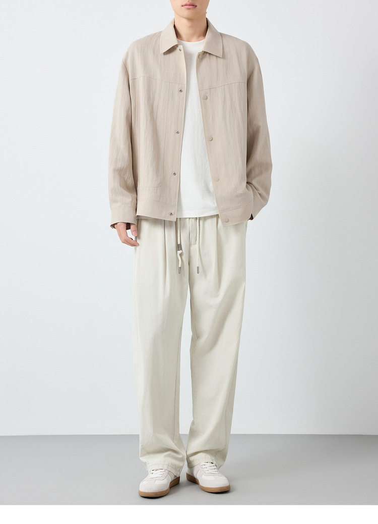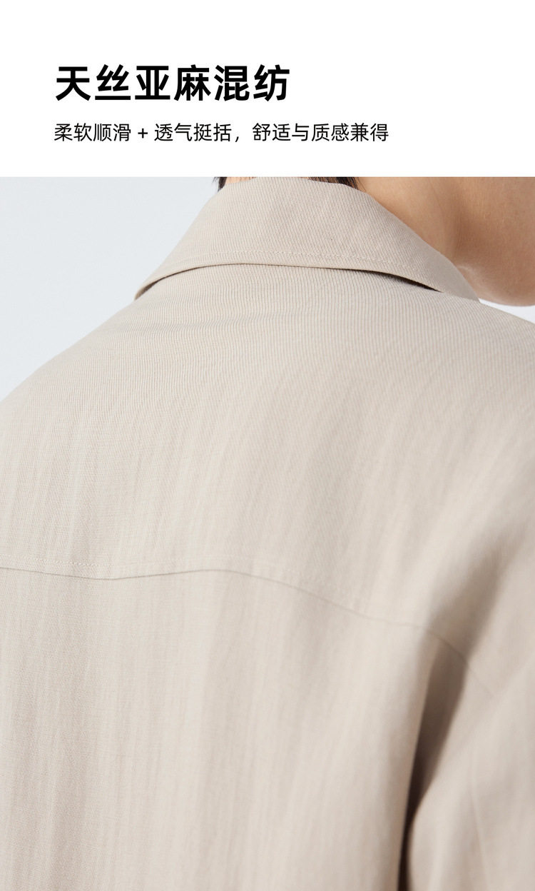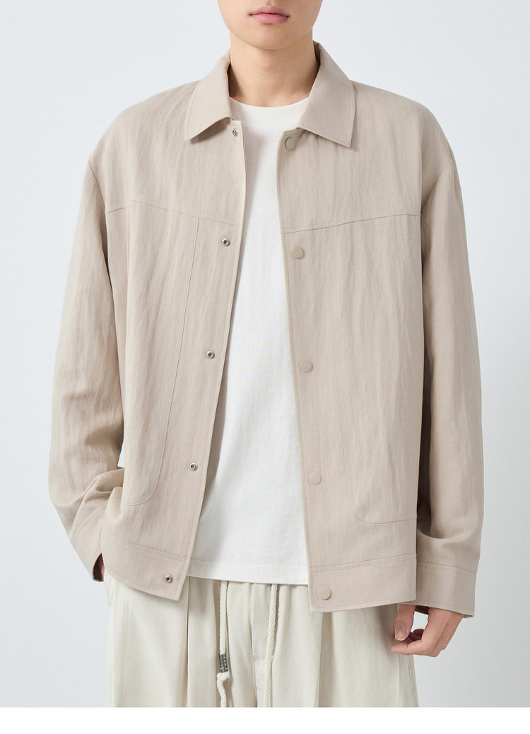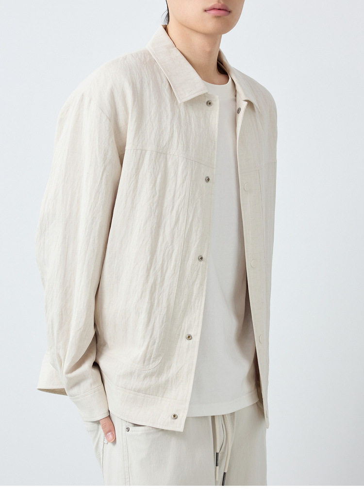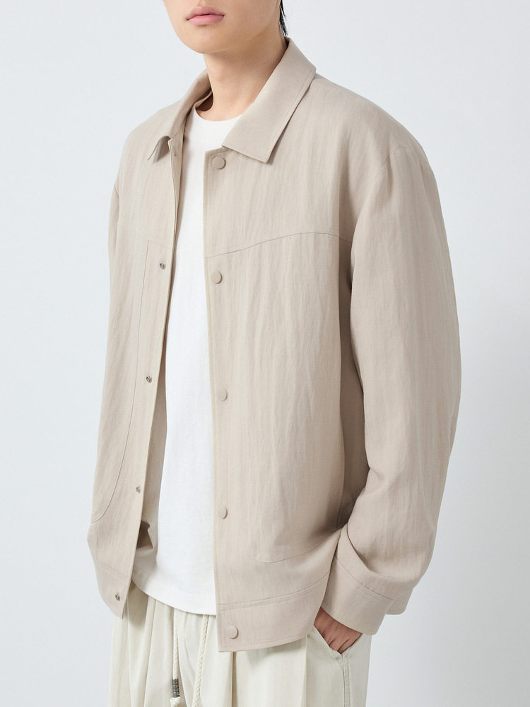 墨麦客男装美式休闲微肌理外套男天丝亚麻混纺翻领男士夹克81611.