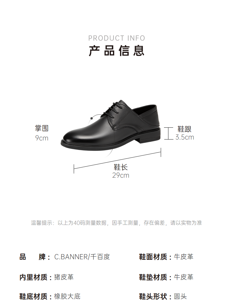 千百度男鞋大头皮鞋春夏男士商务休闲真皮英伦风正装皮鞋A24121907