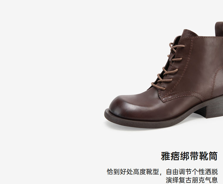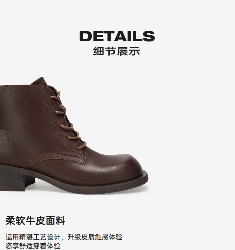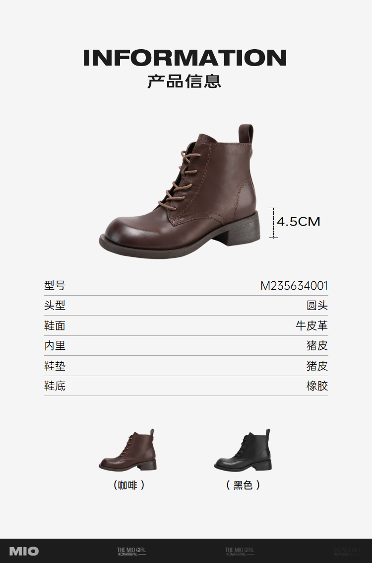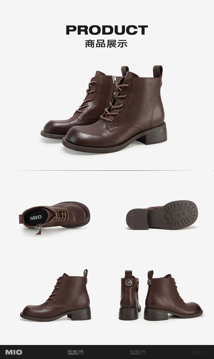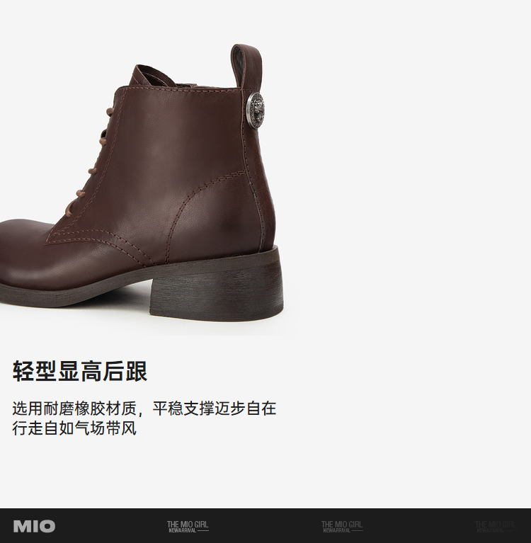 MIO米奥冬季新款粗跟显瘦马丁靴经典休闲靴中跟圆头短靴女M235634001