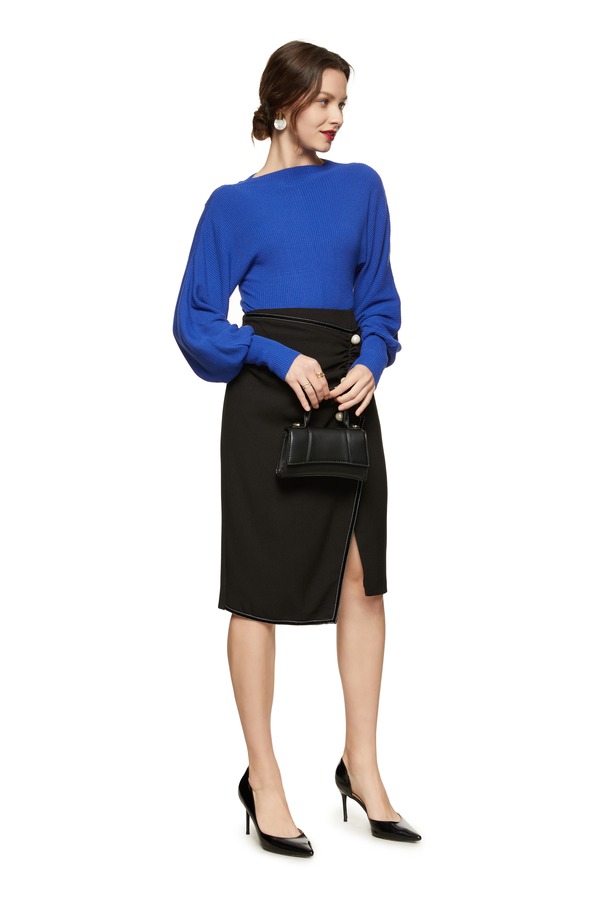 Kai & Kiera 蓝色优雅羊腿袖上衣 8769