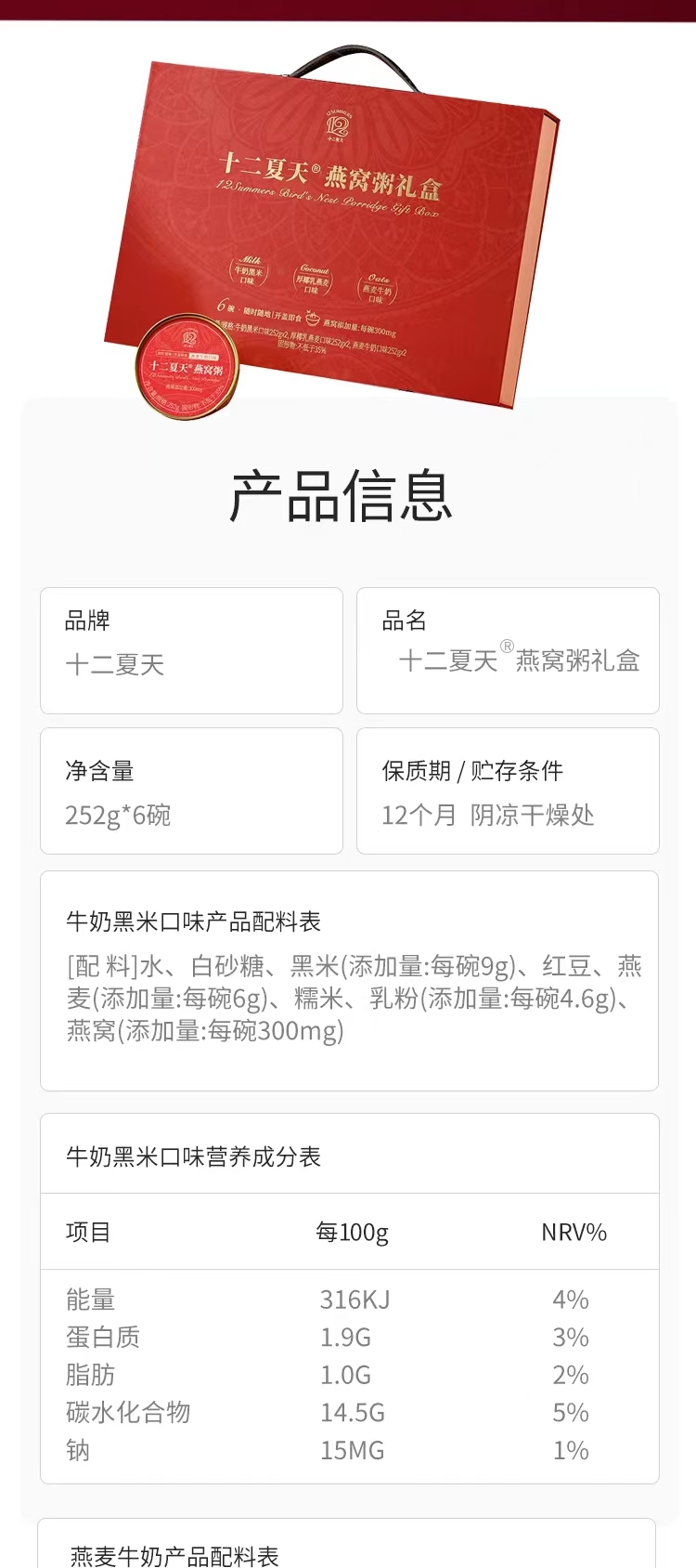 十二夏天 燕窝粥三合一礼盒1.512kg