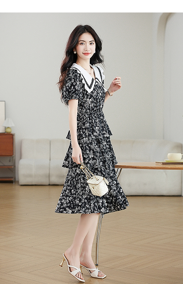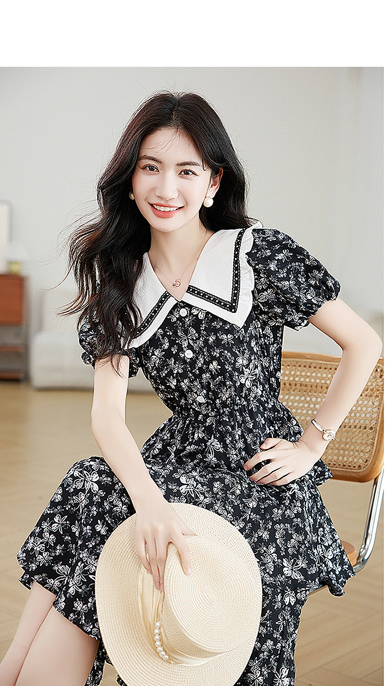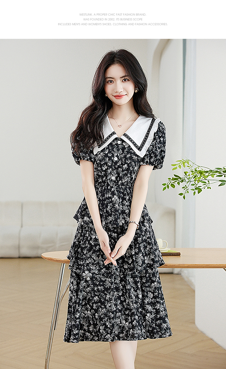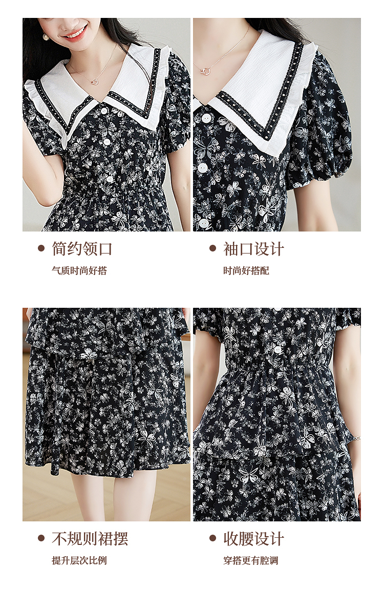 西遇娃娃领碎花连衣裙女夏季新款蛋糕裙a字法式短袖裙子SS050694