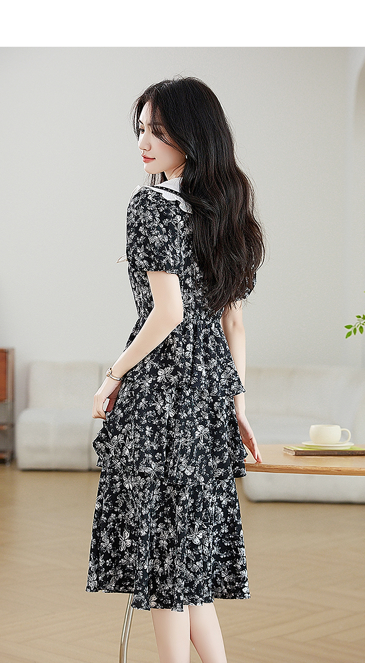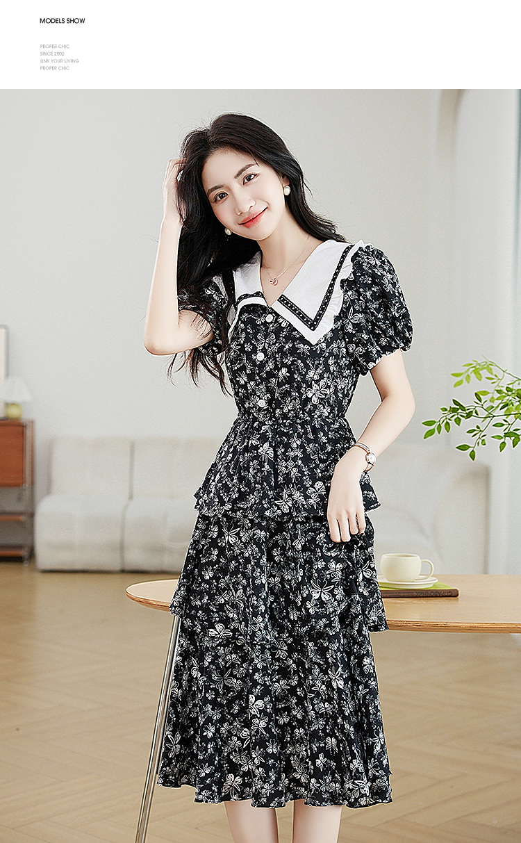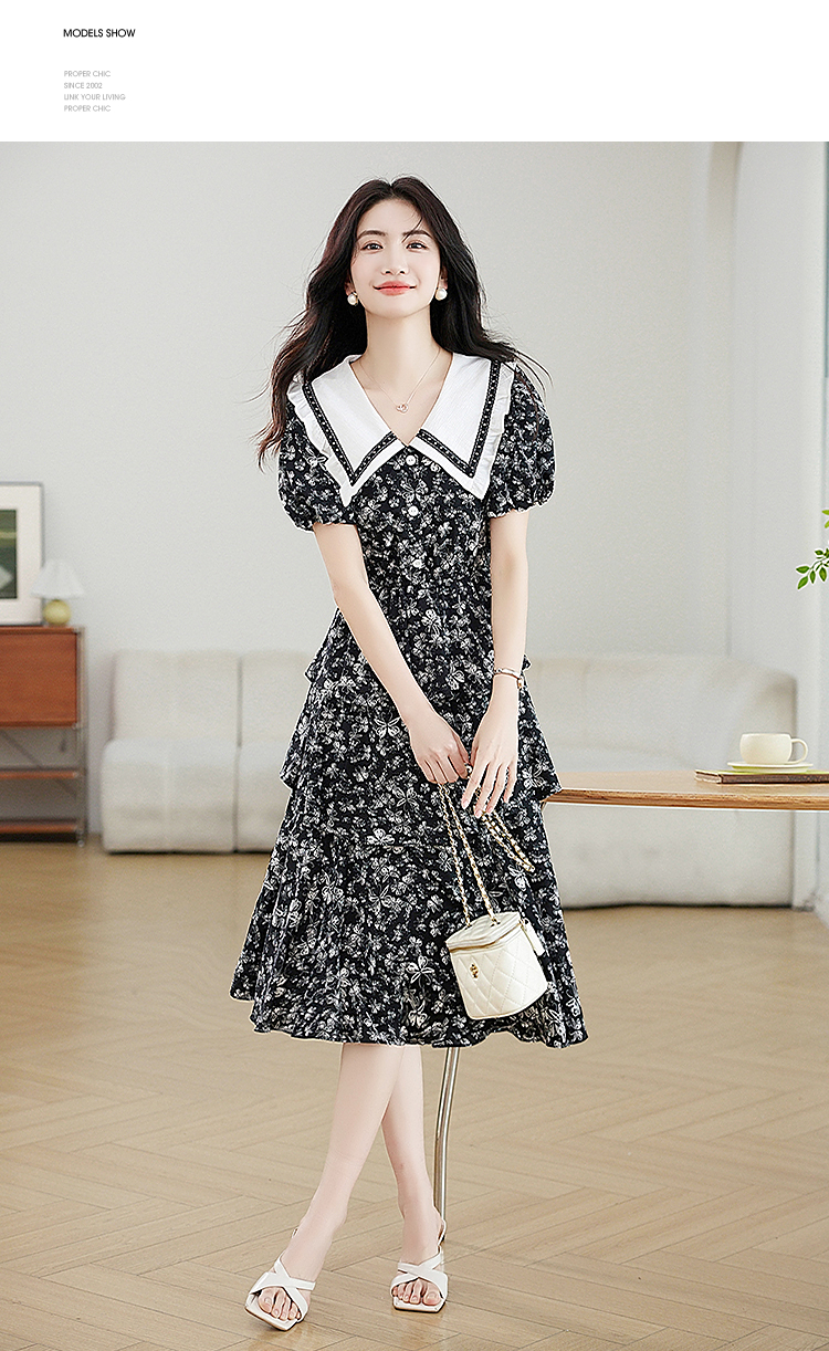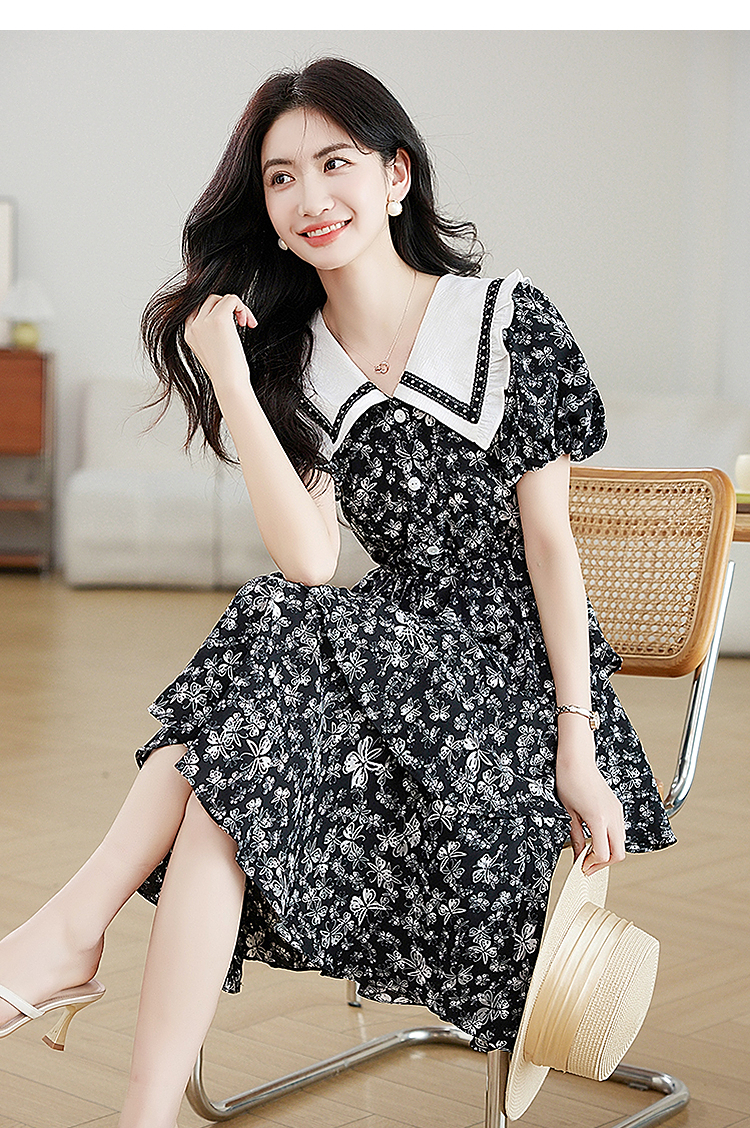 西遇娃娃领碎花连衣裙女夏季新款蛋糕裙a字法式短袖裙子SS050694