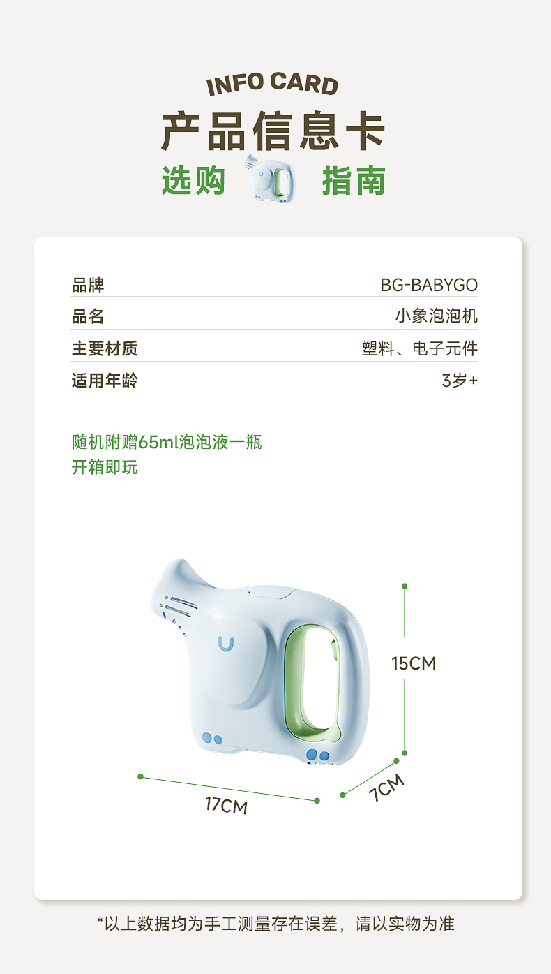 【曼龙严选】BABYGO小象泡泡机婴幼儿童手持全自动吹泡泡枪安全无毒宝宝电玩具