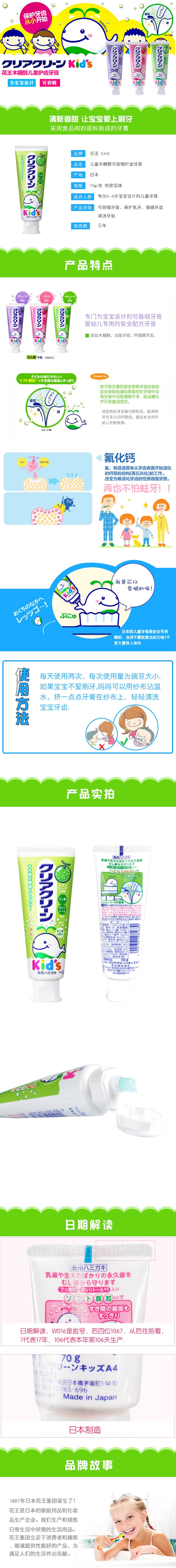 KAO花王 儿童木糖醇细微颗粒牙膏 哈密瓜味 70G 日本